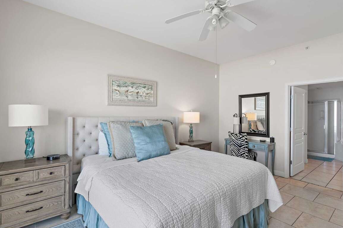-Primary Bedroom 1: King bed, Gulf views, and balcony access.