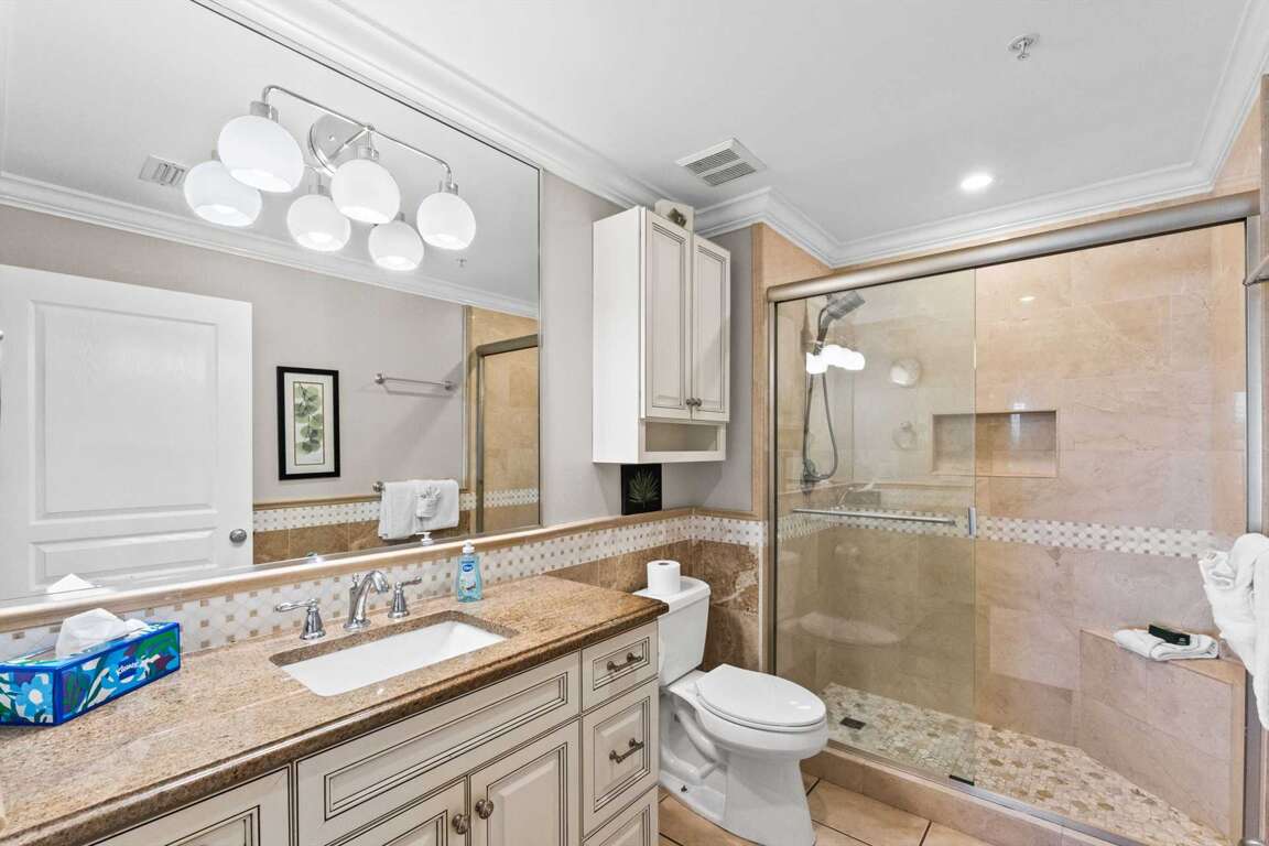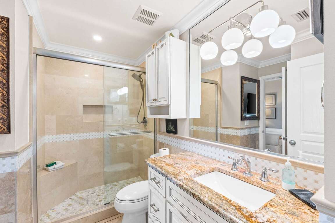 Guest Bath 2: Updated ensuite access to guest bedroom 2, walk-in shower