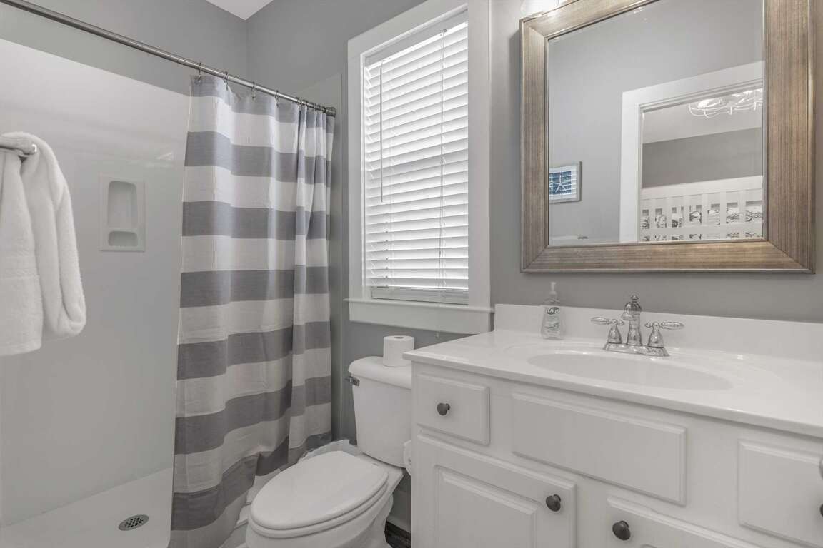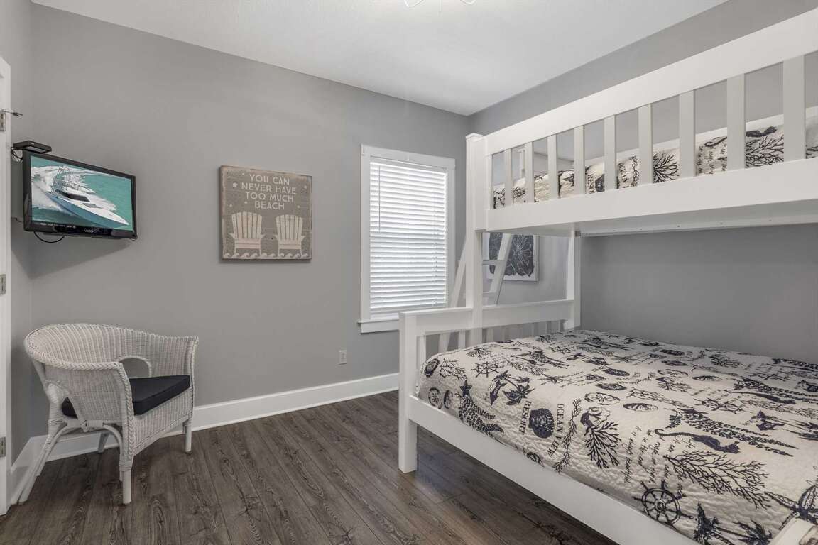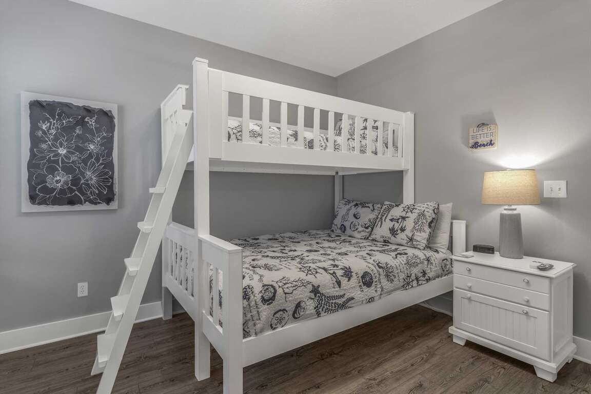 -Guest Bunk Bedroom (2nd Floor): Queen lower bunk, twin upper bunk, and private full bath with walk-in shower.