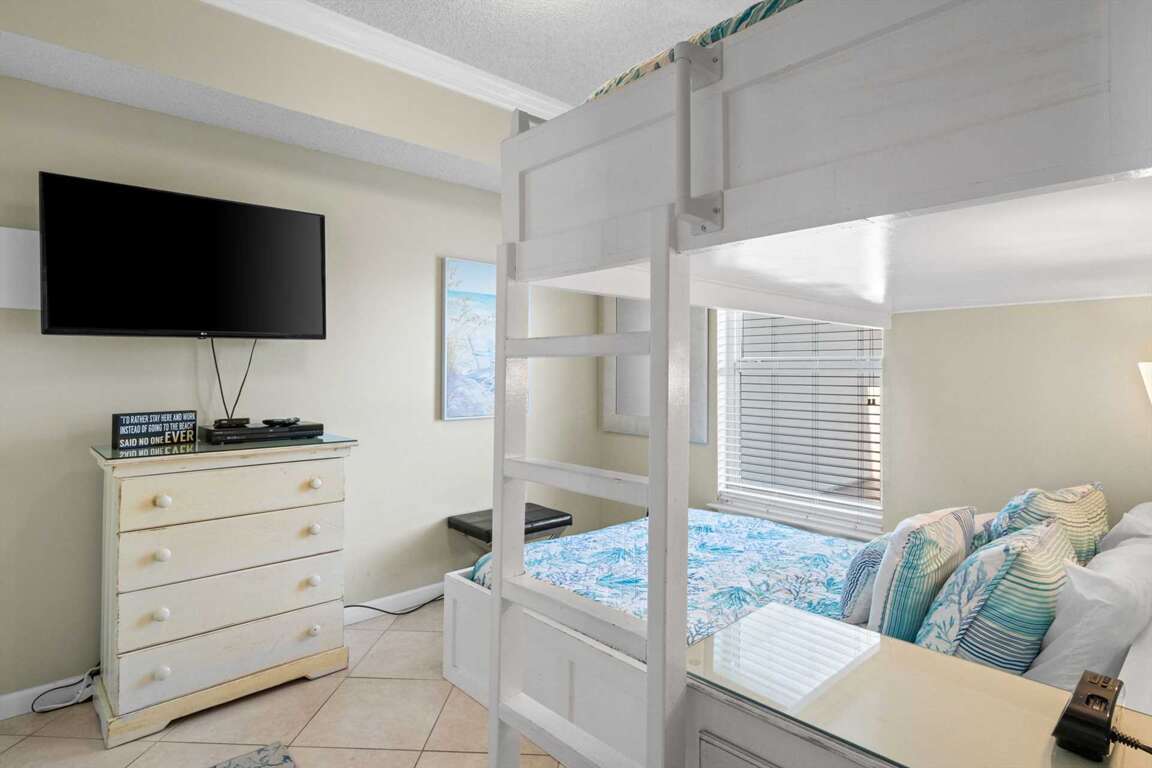 Guest Bedroom 2: Bunk beds with Queen lower and Twin upper