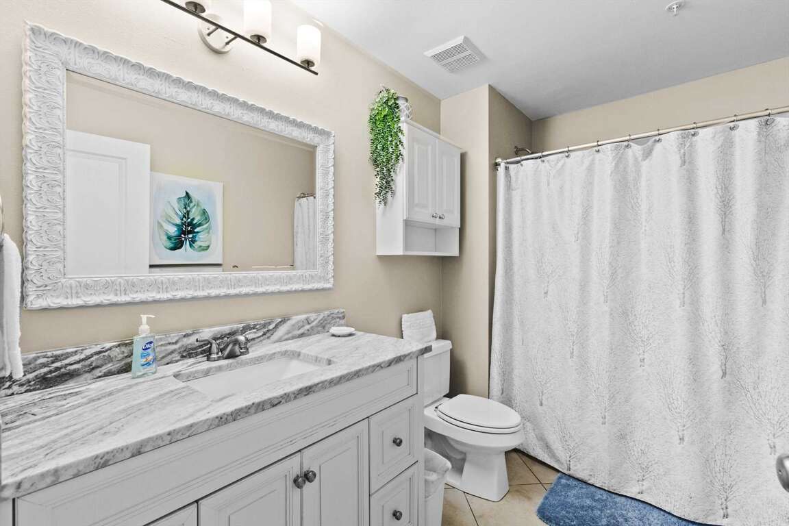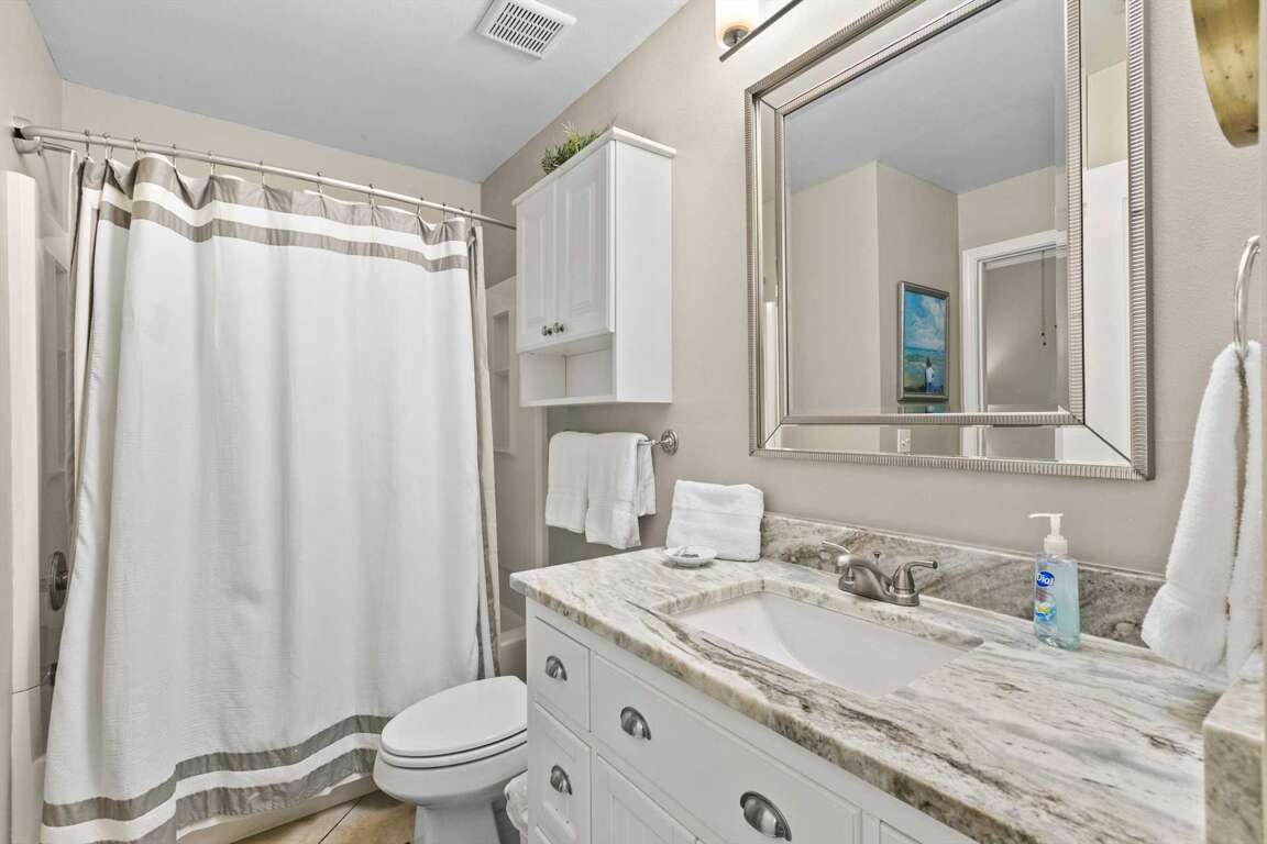 Guest Bath 2: Shared access ensuite full bath with shower/tub combo