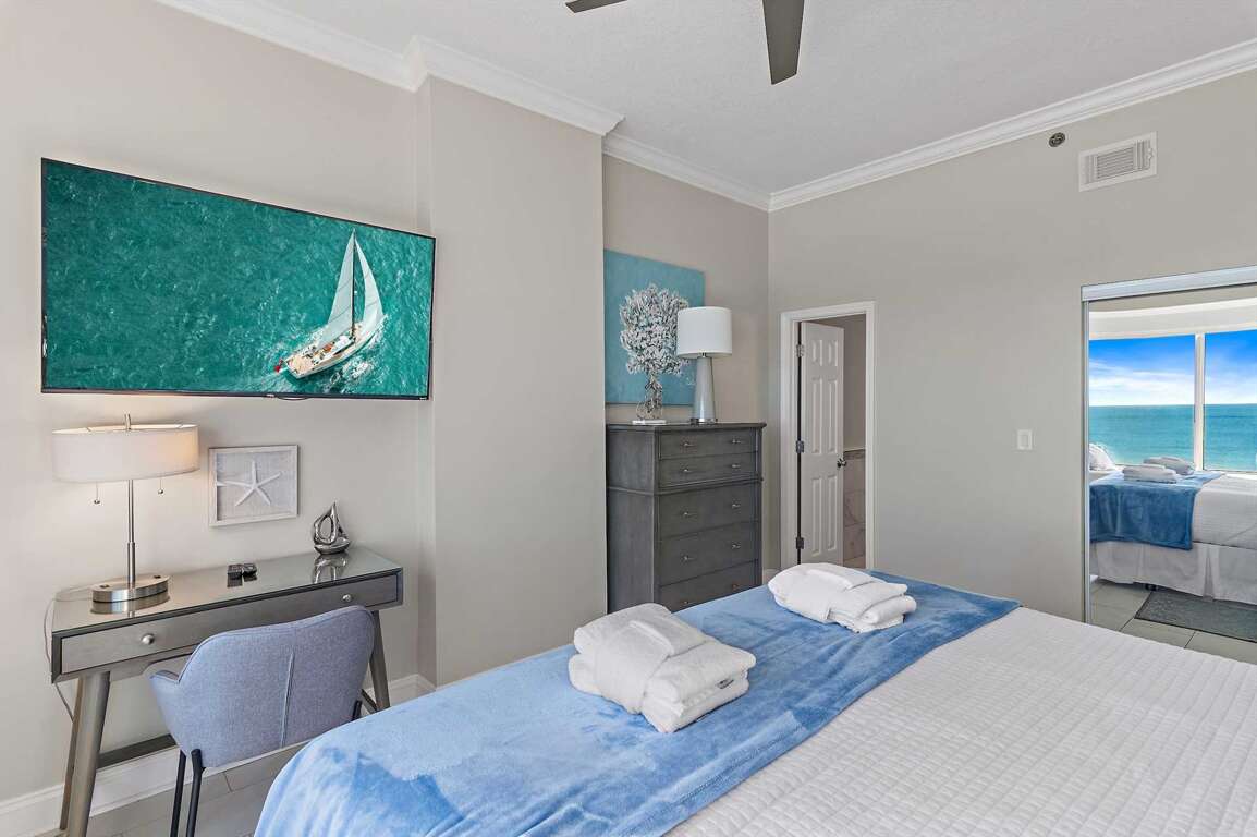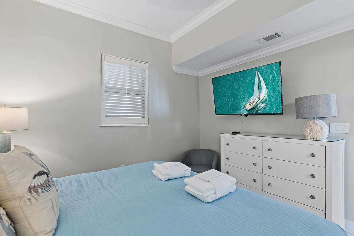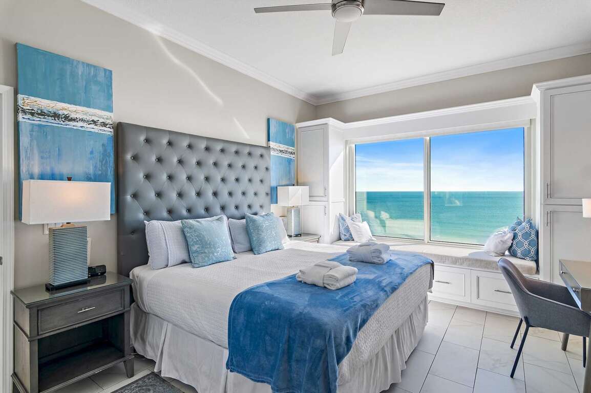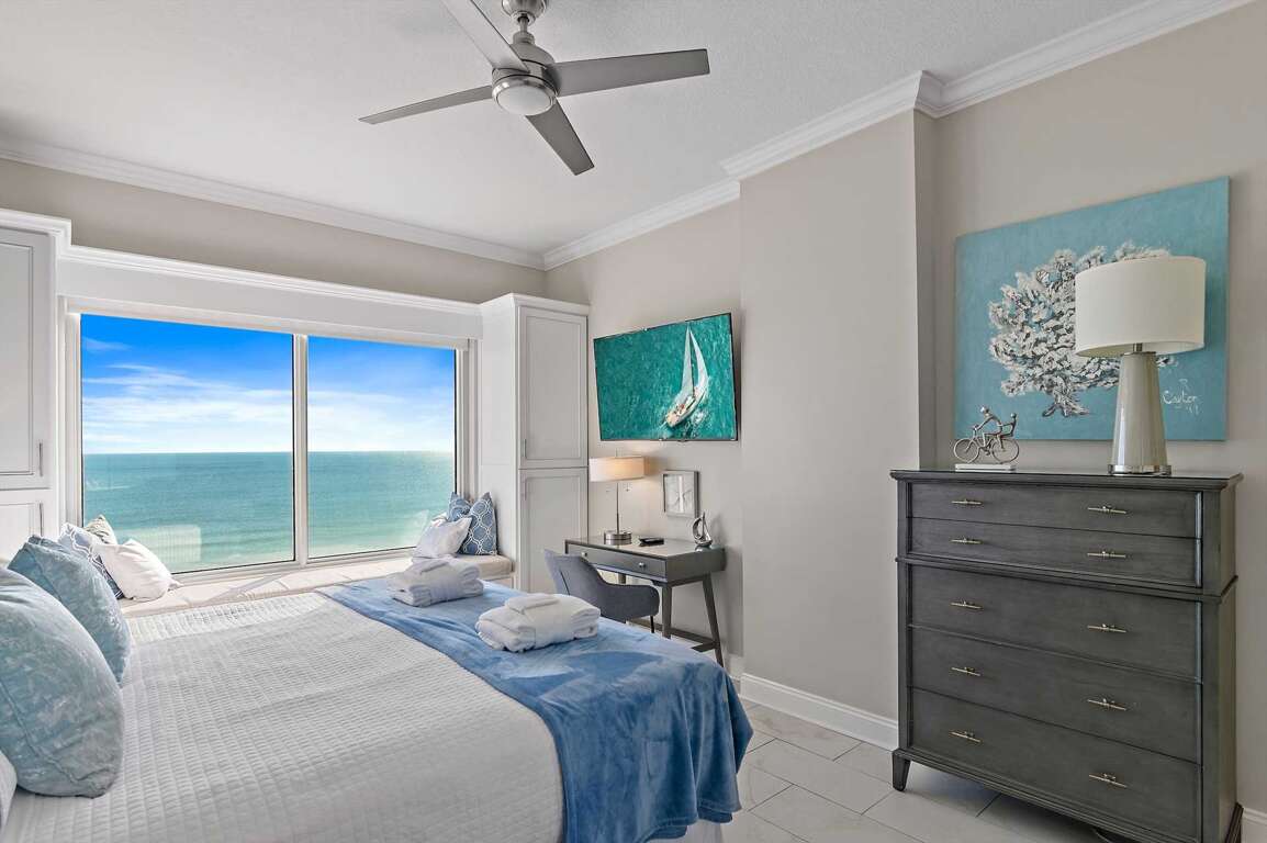 -Master Bedroom: King bed, stunning Gulf views, ensuite bath with walk-in shower