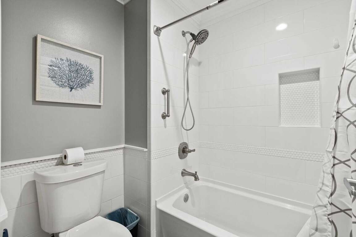 -Guest Bedroom: King bed with adjacent bath featuring a shower/tub combo