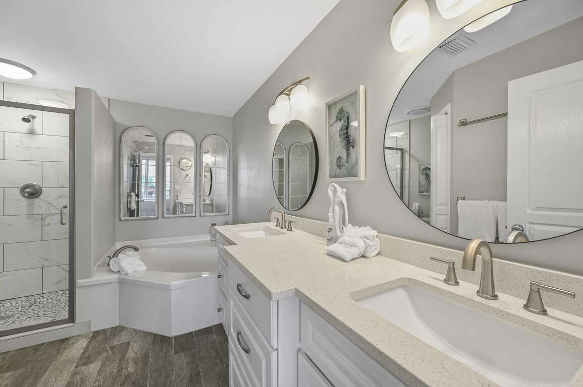 -Master Bedroom 1: King bed, Daybed with trundle (2 twin beds); Master Bath with Garden Tub & Walk-In Shower