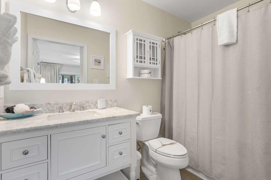 -Guest Bedroom: Queen bed | Full bath with shower/tub combo