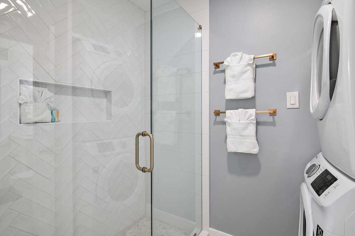 -Primary Bedroom: King bed with attached full bathroom with walk-in shower.