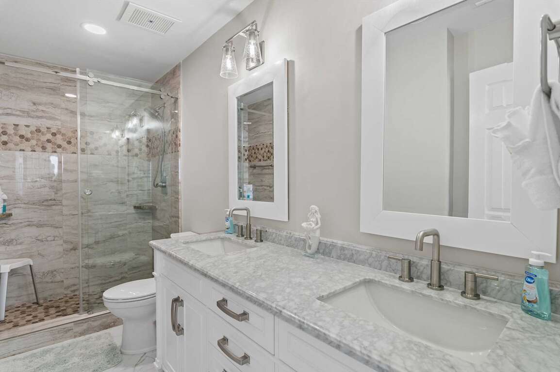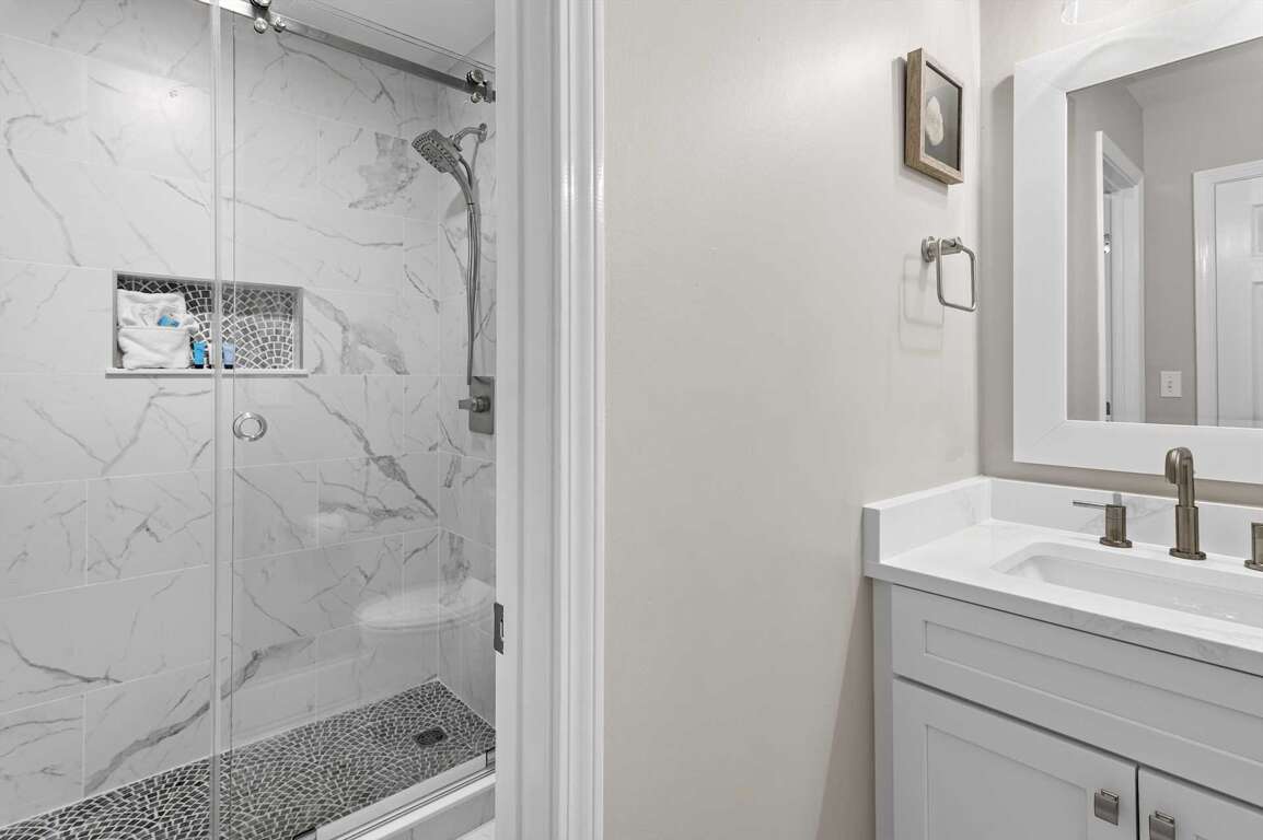 Guest Bath 2: Full bath with walk-in shower, accessible from living room