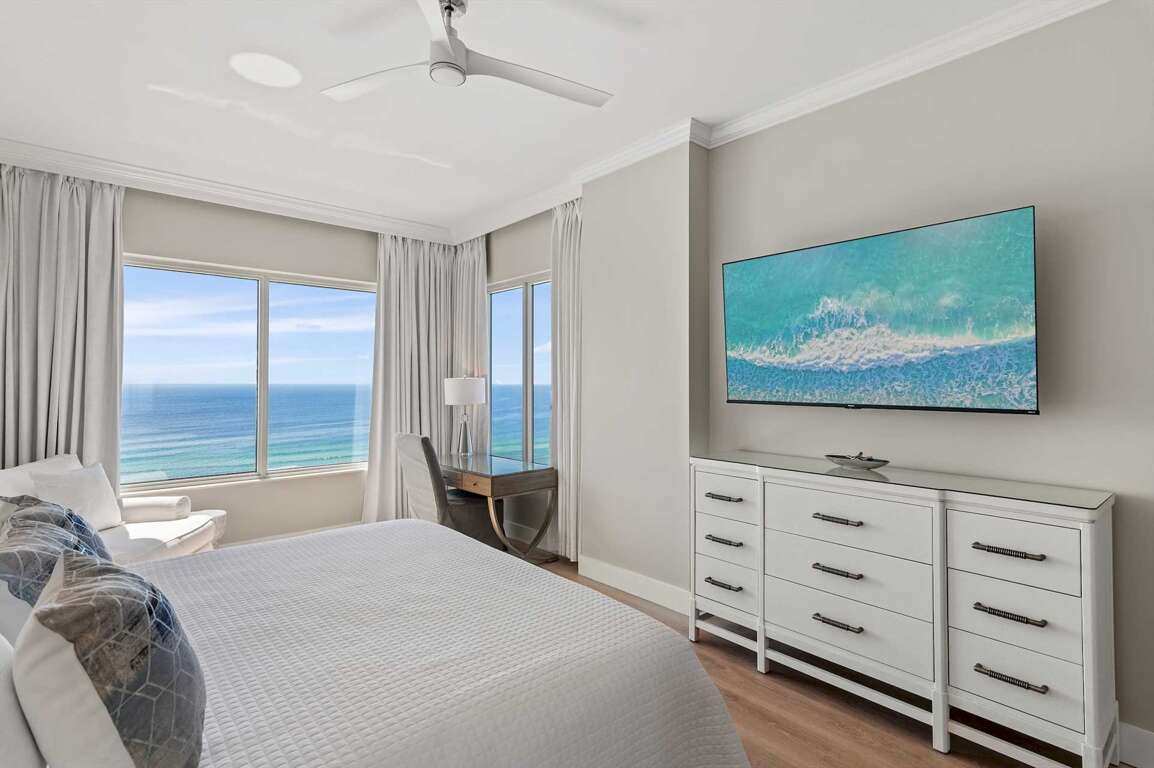 Welcome to Coconut Corner, our newest Leeward Key Rental in Destin. It has a unique corner floor plan in Leeward Key with two Gulf-facing windows in the oversized primary bedroom. Leeward Key units are a favorite of many guests staying in the Destin area and are highly sought after vacation rentals. This is one of the only Beach Condos in Destin properties with 2 pools, one on the beach side of Scenic Gulf Drive and one on the North side of Scenic Gulf Drive, behind the condos themselves. The view from this unit is one of the best beach views in the Destin / Miramar Beach area.