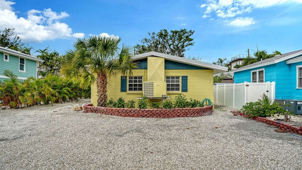 Greeted by shell parking and path, walk up to enter through a shared screened-in porch to a newly remodeled haven. With 4 parking spaces, you have plenty of space for golf carts and guests.