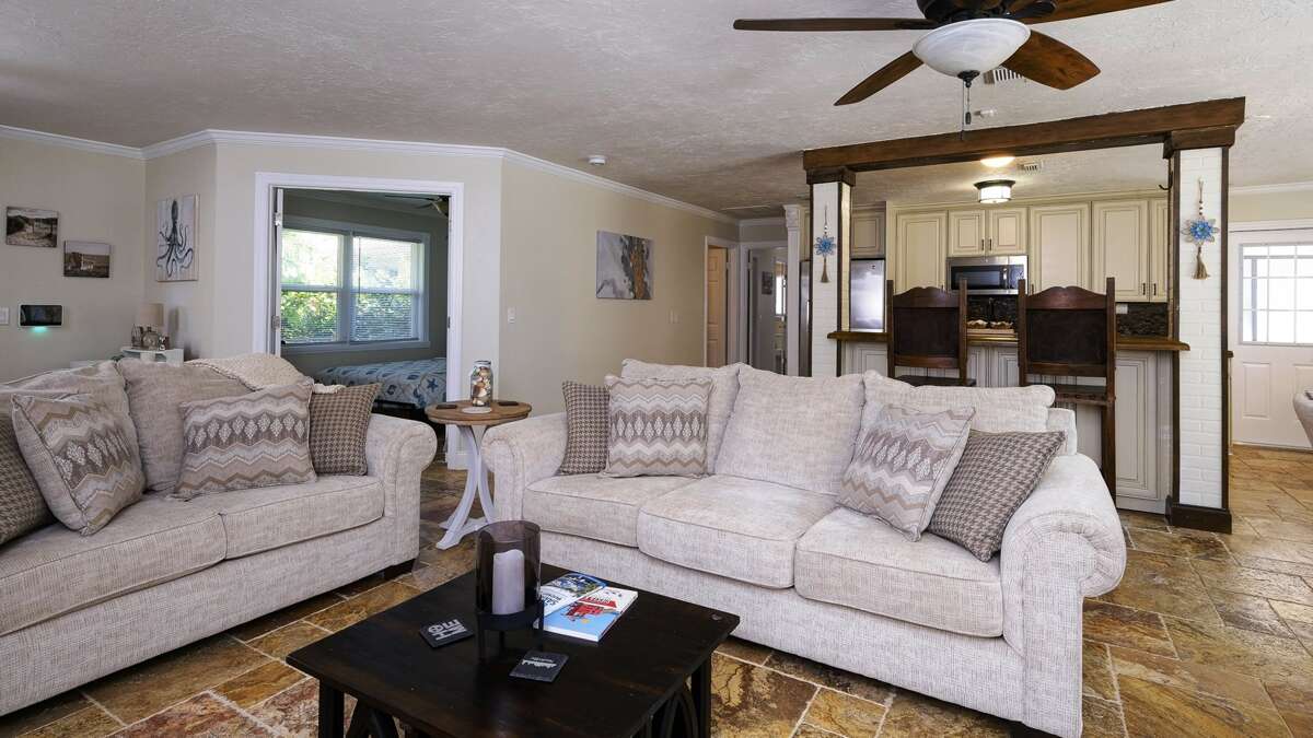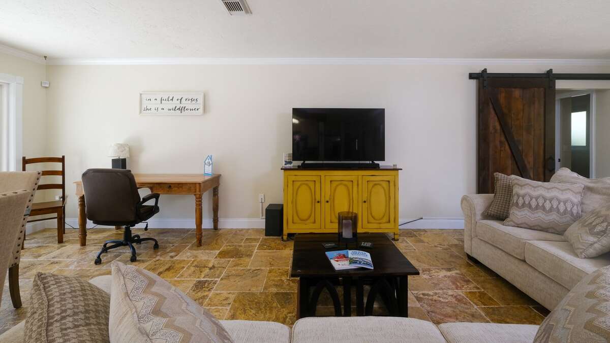 The lovely primary bedroom has a king bed and ensuite bathroom with large walk in shower The second bedroom has a Queen. The third bedroom has two full beds. The guest bathroom features a tub/shower combo.
