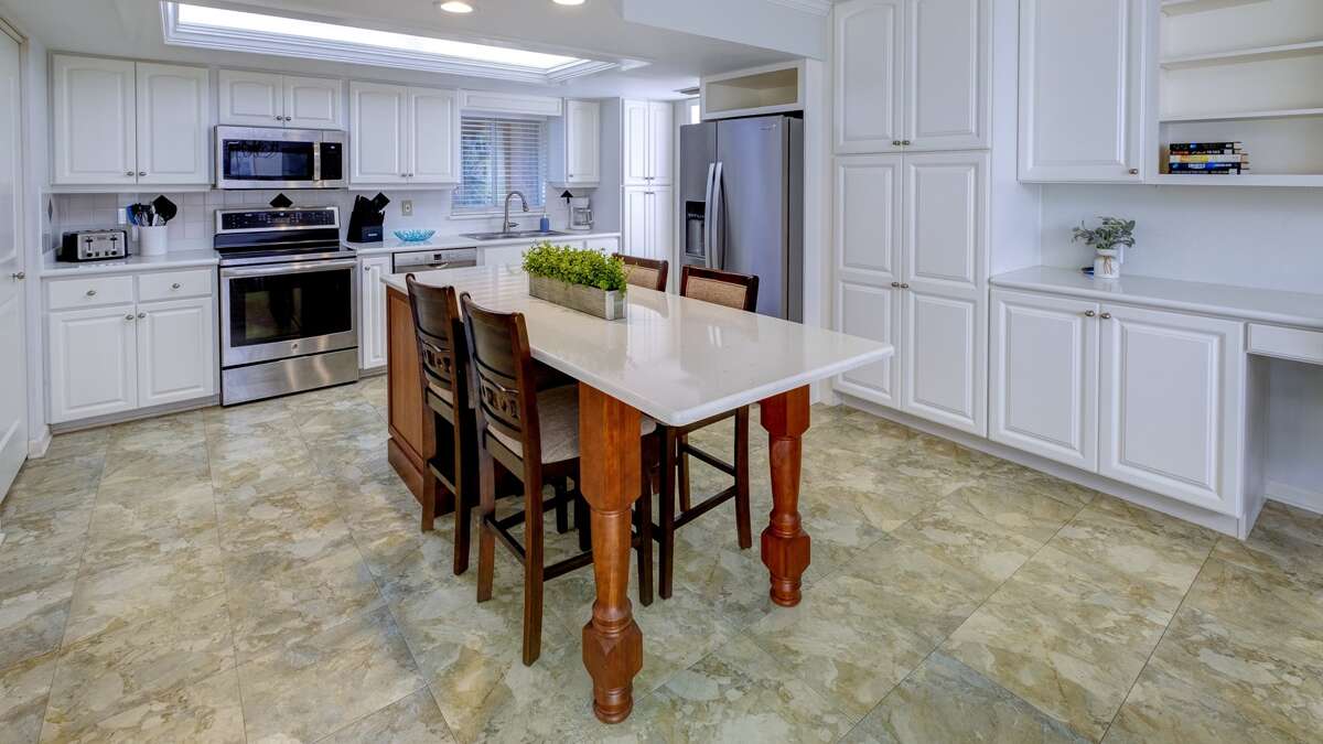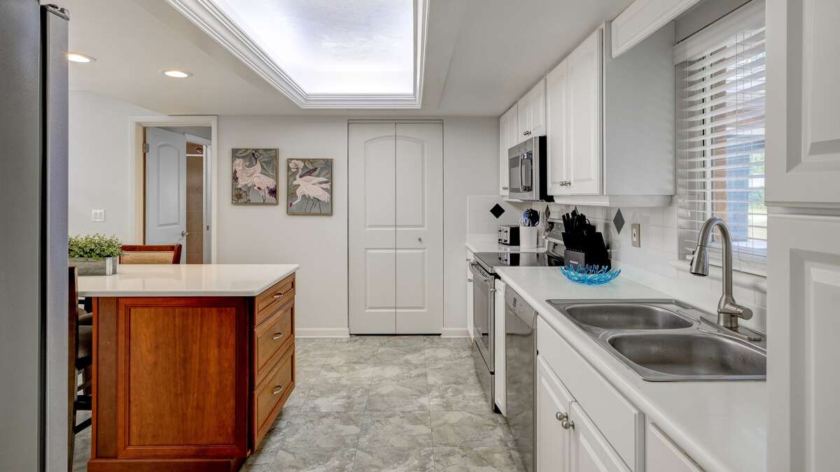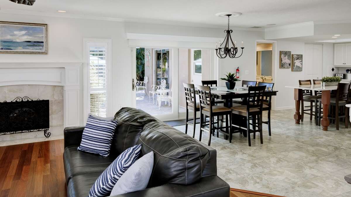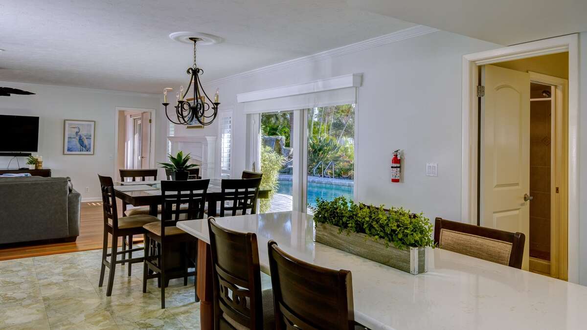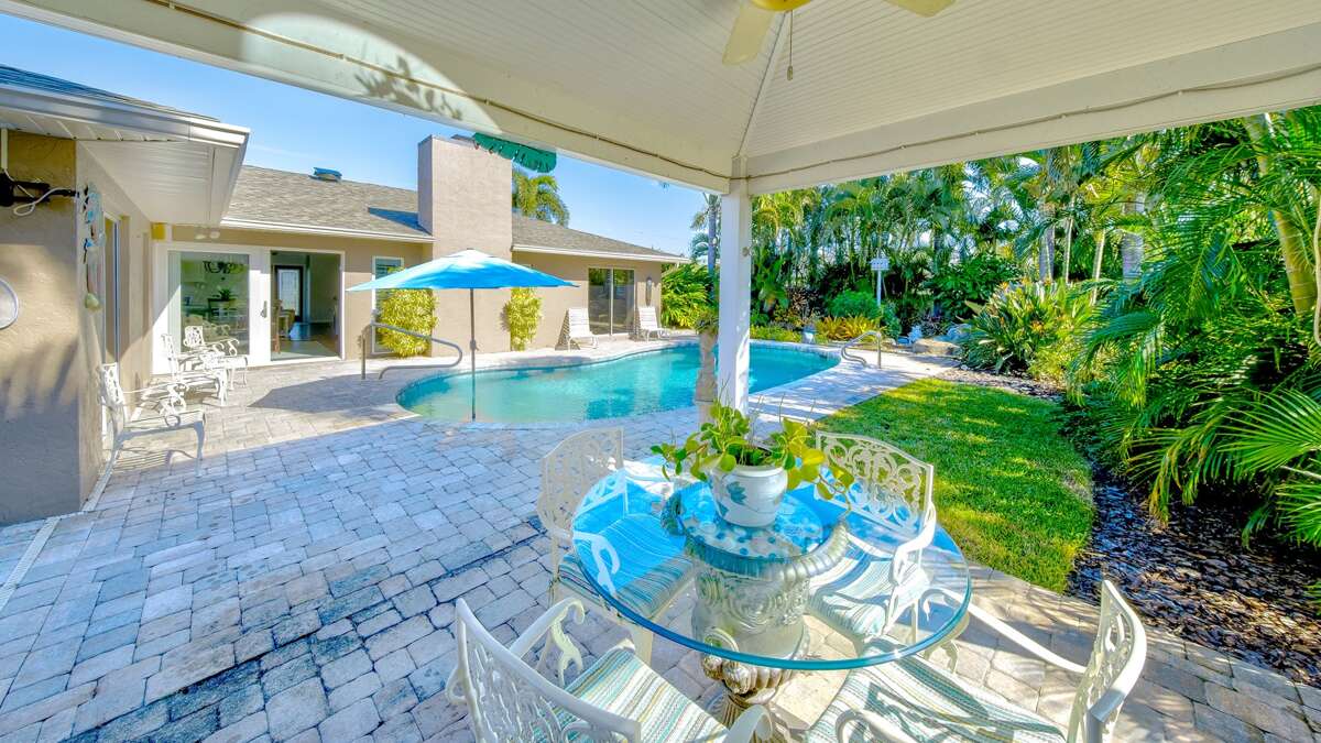 You will most likely spend most of your time outside as the spacious backyard offers tranquility with the waterfall feature off the heated pool and several areas to sit and enjoy a good book or meal. The backyard is fully fenced in.