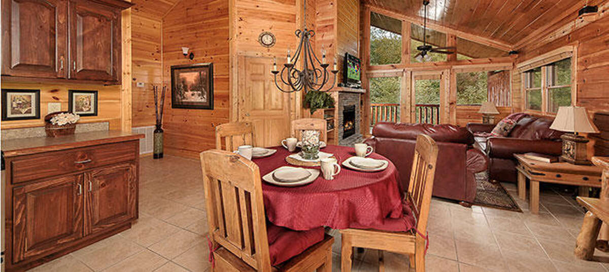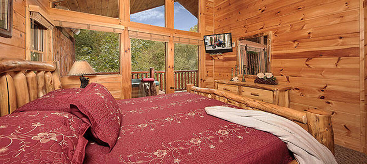 Misty Sunrise is a cozy one-bedroom cabin in Starr Crest Resort. This quaint log home is the perfect getaway for honeymoons, anniversaries or much-needed couple's weekends of any kind. Misty Sunrise sleeps four guests with one king bed, queen sofa sleeper and one bath. Guests will feel right at home in front of the stone fireplace as they settle in for a movie night or to watch their favorite game on the 50-inch flat screen TV. Outside on the deck, guests will find a hand-crafted hickory table and chairs, rocking chairs and a hot tub to relax in as they take in the mountain air. Misty Sunrise is only 5.5 miles from Dollywood theme park and Dollywood's Splash Country water park. Also, the cabin is just minutes away from other area attractions in Pigeon Forge and Gatlinburg.