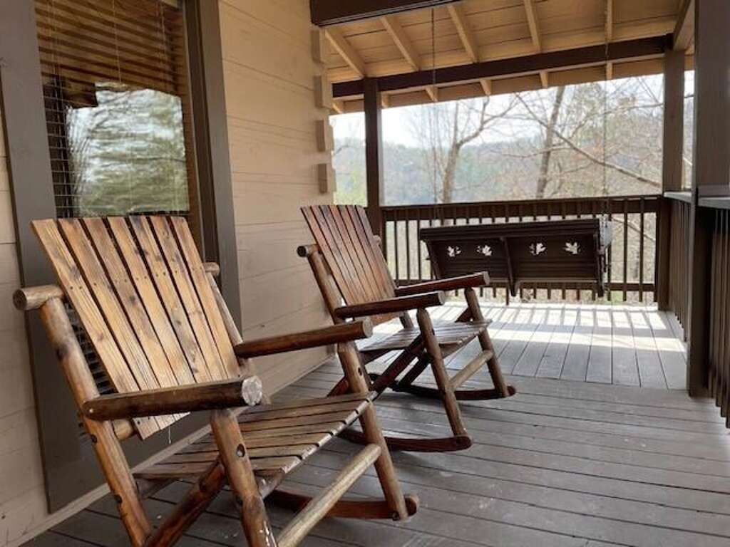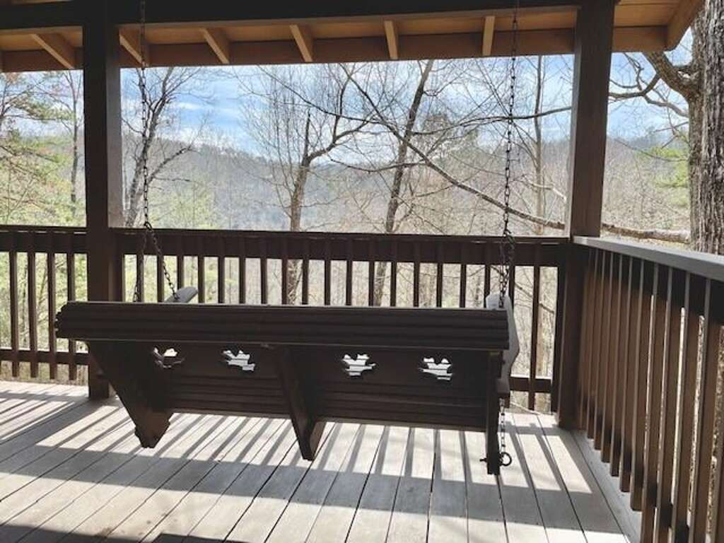 Outside on the wooden porch, soak up your natural surroundings, unwind in the private hot tub, or cuddle up on the porch swing with an ear to the woods.