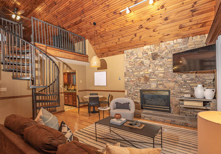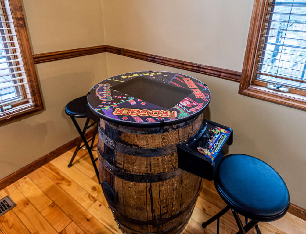 Ain't Misbehavin' is located in Woodridge Village in beautiful Pigeon Forge, TN. Minutes to area attractions like Dollywood, Gatlinburg & The Great Smoky Mountains National Park. This cozy two bedroom, two bath, loft cabin offers a sleep occupancy of 6. Soaring tongue and groove ceilings with stacked stone fireplace are highlight features of this chalet style charmer. Fully furnished kitchen for cooking and entertaining in for the evening. Enjoy hours of gaming fun with arcade style multi-cade or enjoy some real R & R in the jetted jacuzzi tub or take in the stars soaking in the outdoor hot tub . Conveniently located next-door to the resort outdoor seasonal pool. Natural surroundings and distant mountain views add to the serenity & relaxation that Ain't Misbehavin' offers for your next Smoky Mountain getaway.
