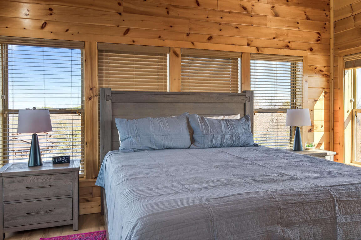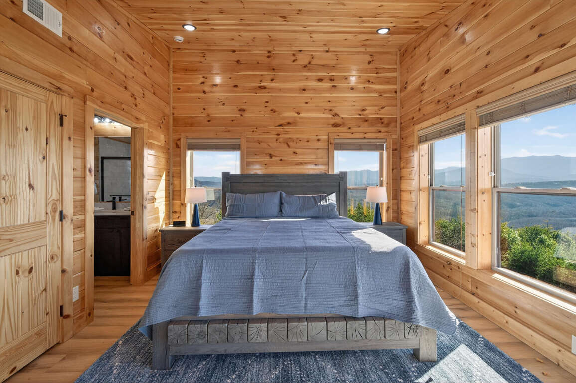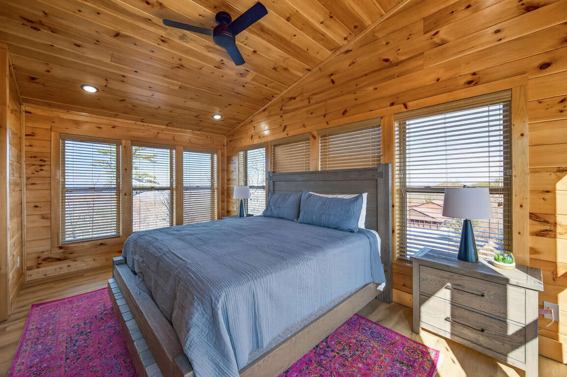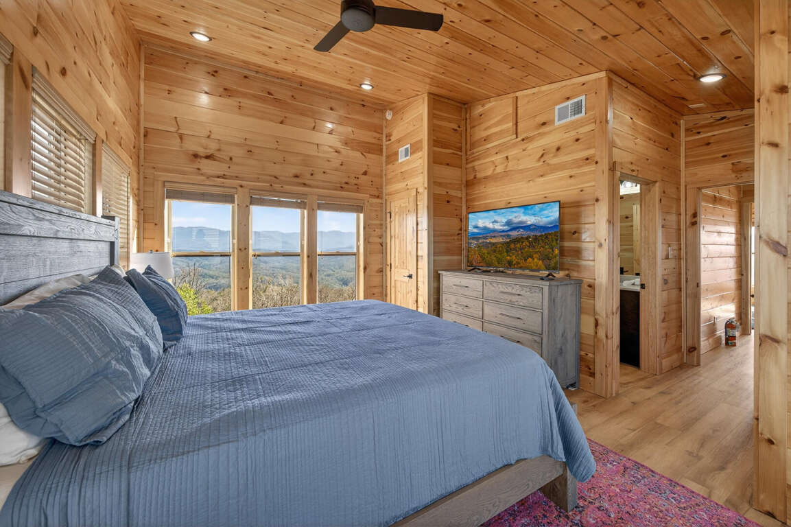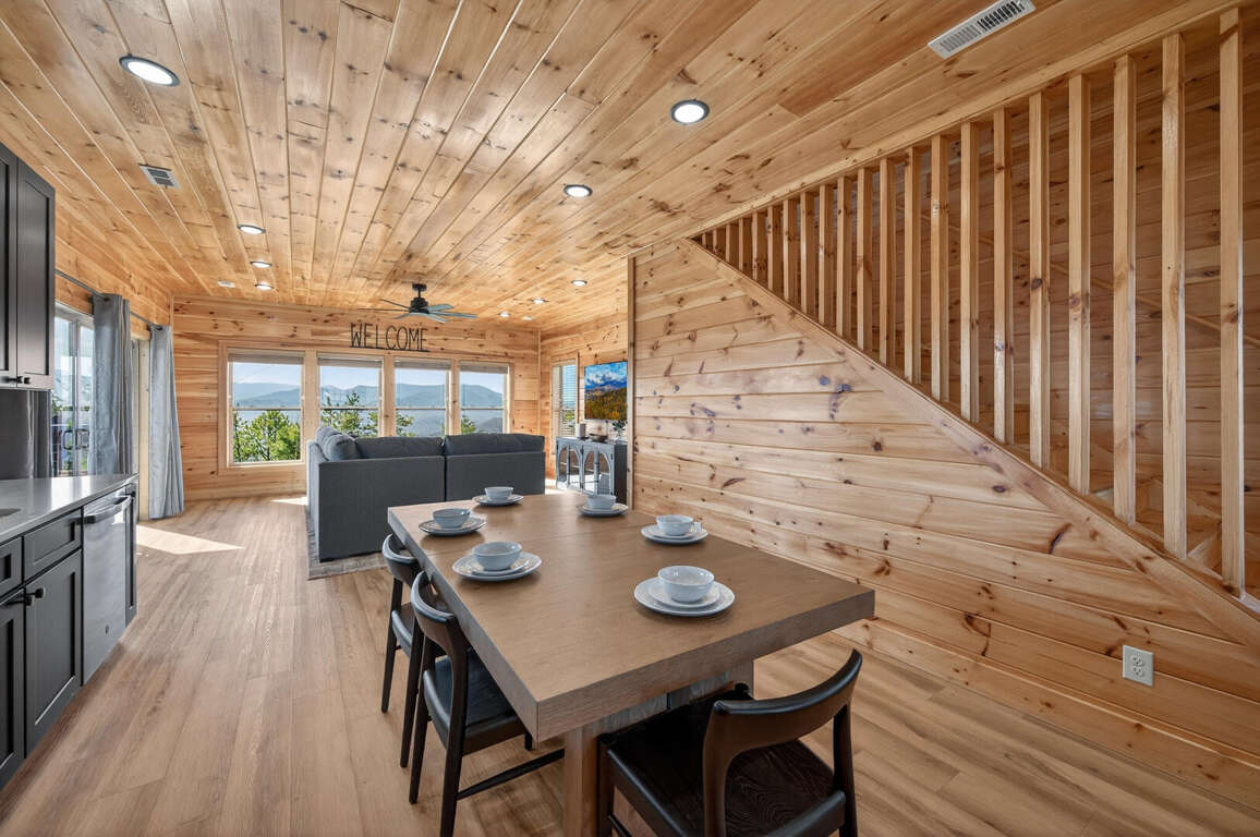 Step outside to the expansive private deck and take in breathtaking 360-degree mountain views. Relax in the rocking chairs, dine outdoors, or unwind in the hot tub while watching the sun rise over the Smokies, the sky glow at sunset, or the stars fill the night. From this elevated vantage point, guests also enjoy a rare bird’s-eye view of Dollywood’s seasonal fireworks—an unforgettable highlight that brings the magic of the park right to your stay.