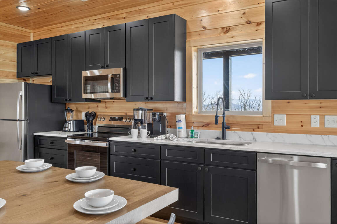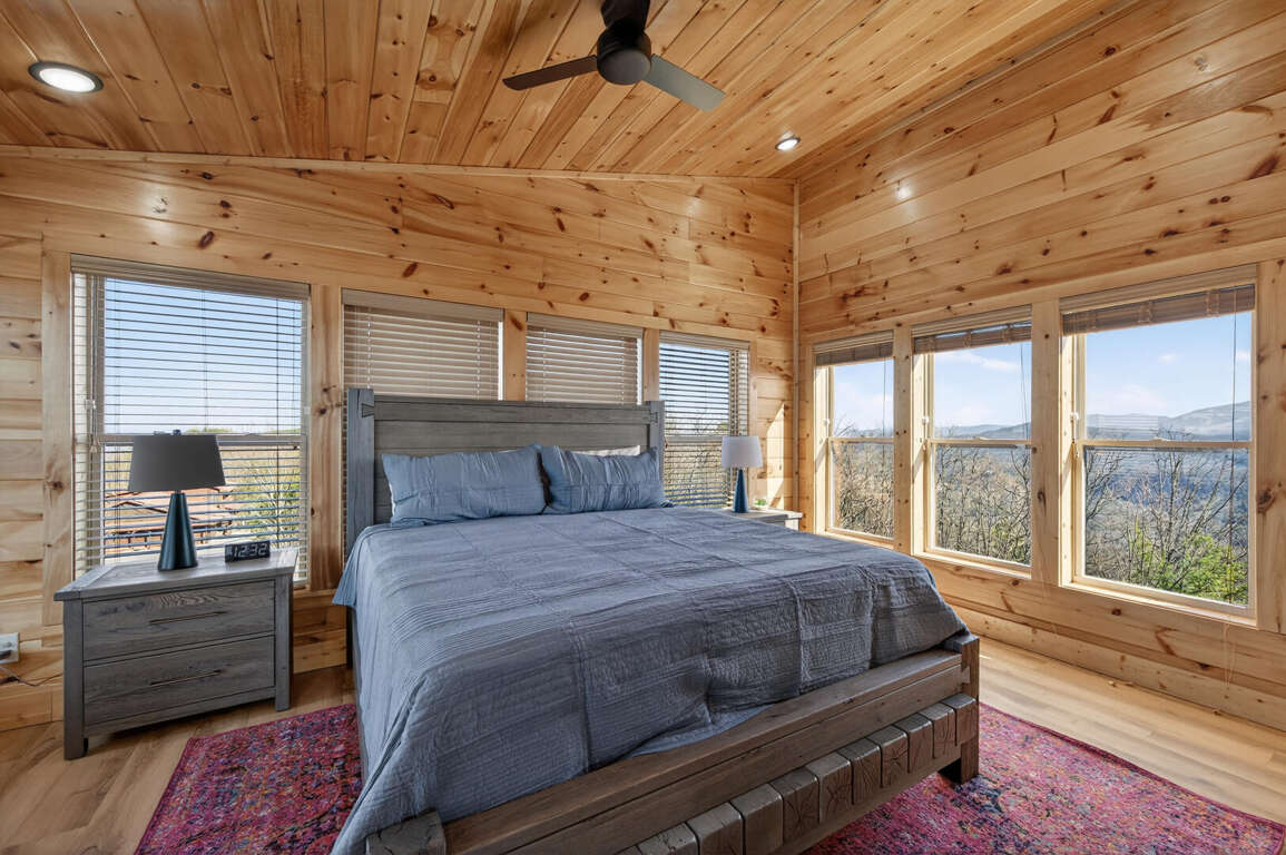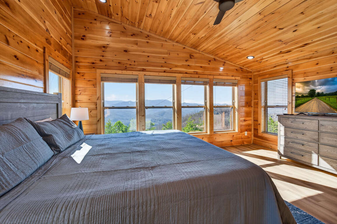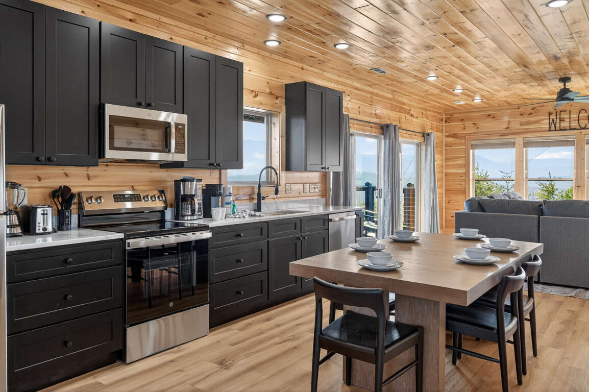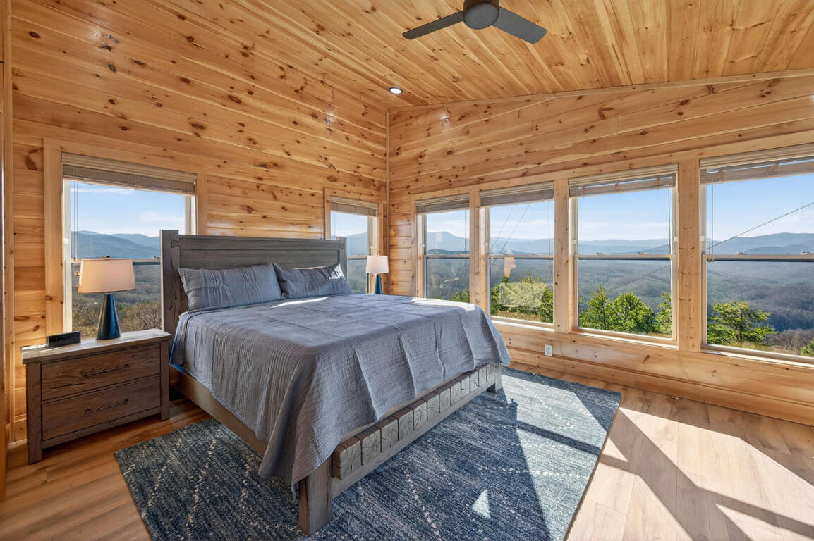 Step outside to the expansive private deck and take in breathtaking 360-degree mountain views. Relax in the rocking chairs, dine outdoors, or unwind in the hot tub while watching the sun rise over the Smokies, the sky glow at sunset, or the stars fill the night. From this elevated vantage point, guests also enjoy a rare bird’s-eye view of Dollywood’s seasonal fireworks—an unforgettable highlight that brings the magic of the park right to your stay.