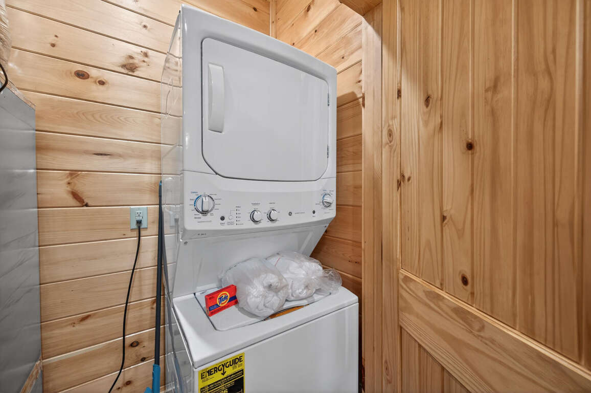 For added convenience, the cabin includes a washer and dryer, making extended stays easy and comfortable.