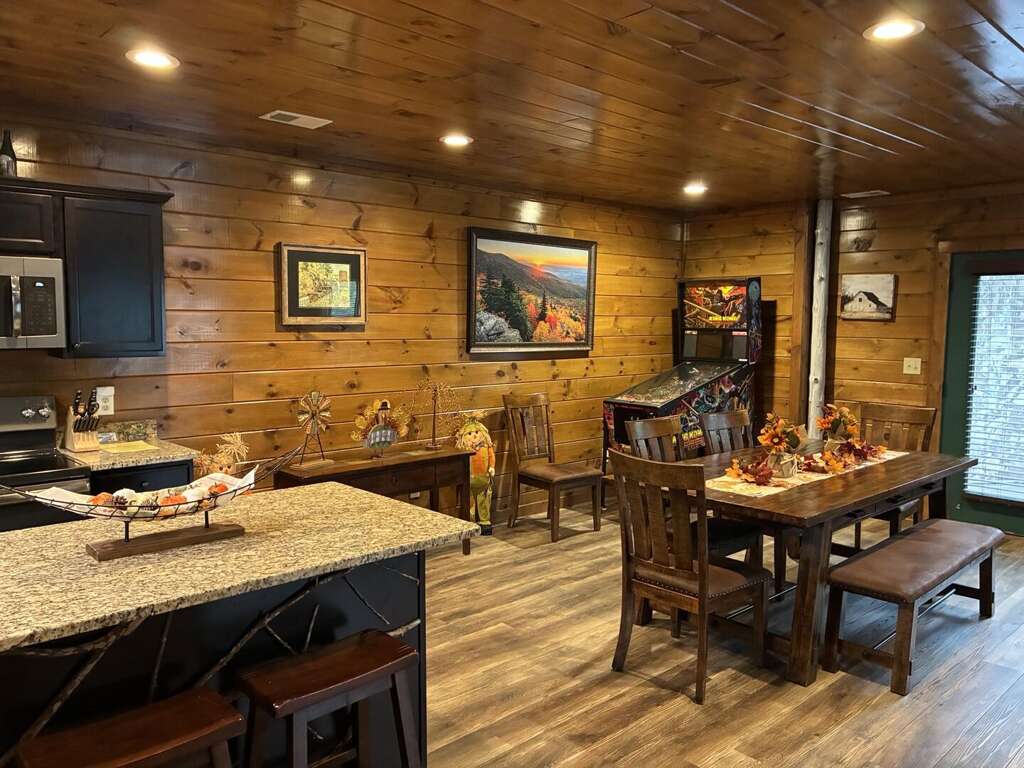 Whether you're relaxing by the stone fireplace, gathered in the living room for movie night, or enjoying some friendly competition in the arcade corner, there's never a dull moment here.