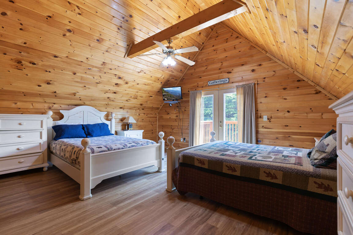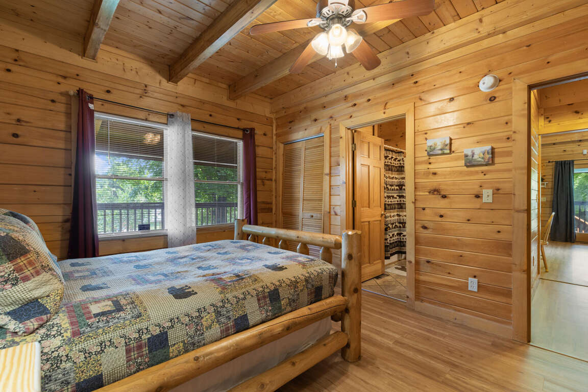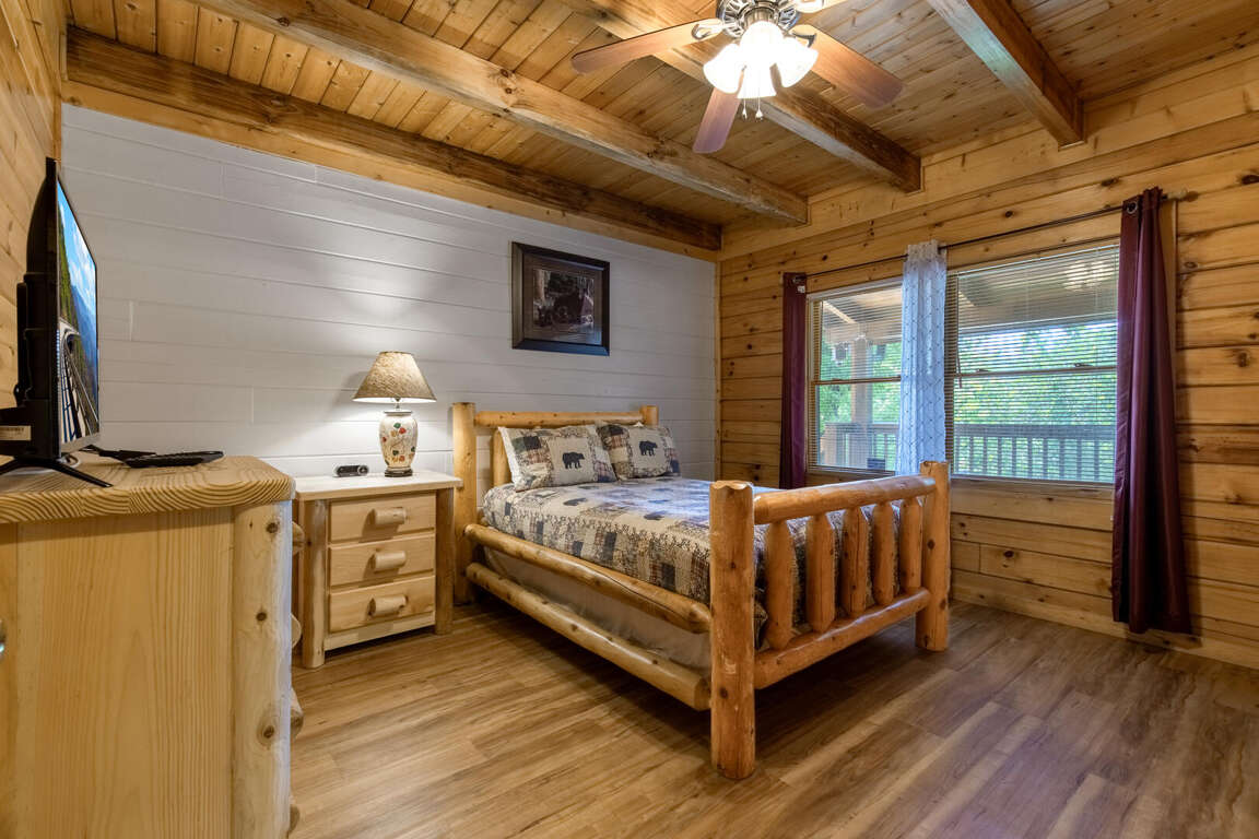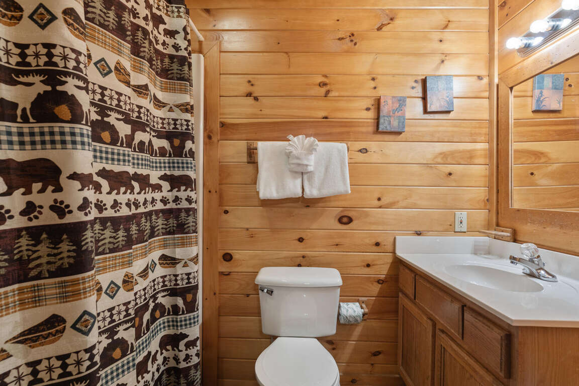 Three bears is a charming three-bedroom cabin located in Sevierville. This cozy cabin sleeps ten guests with one king bed, three queen beds, one queen sleeper sofa, and two bathrooms. The cabin has two bedrooms downstairs with a comfy bedroom upstairs with a balcony. The cabin boasts a wood burning fireplace, multi game arcade, and hot tub for you to enjoy your time away. Three Bears is only 3.6 miles from Dollywood theme park and Dollywood's Splash Country water park. Also, the cabin is just minutes away from other area attractions in Pigeon Forge and Gatlinburg.