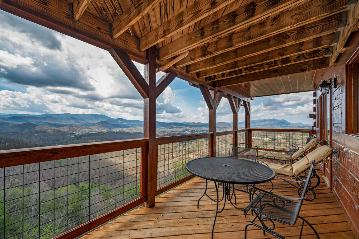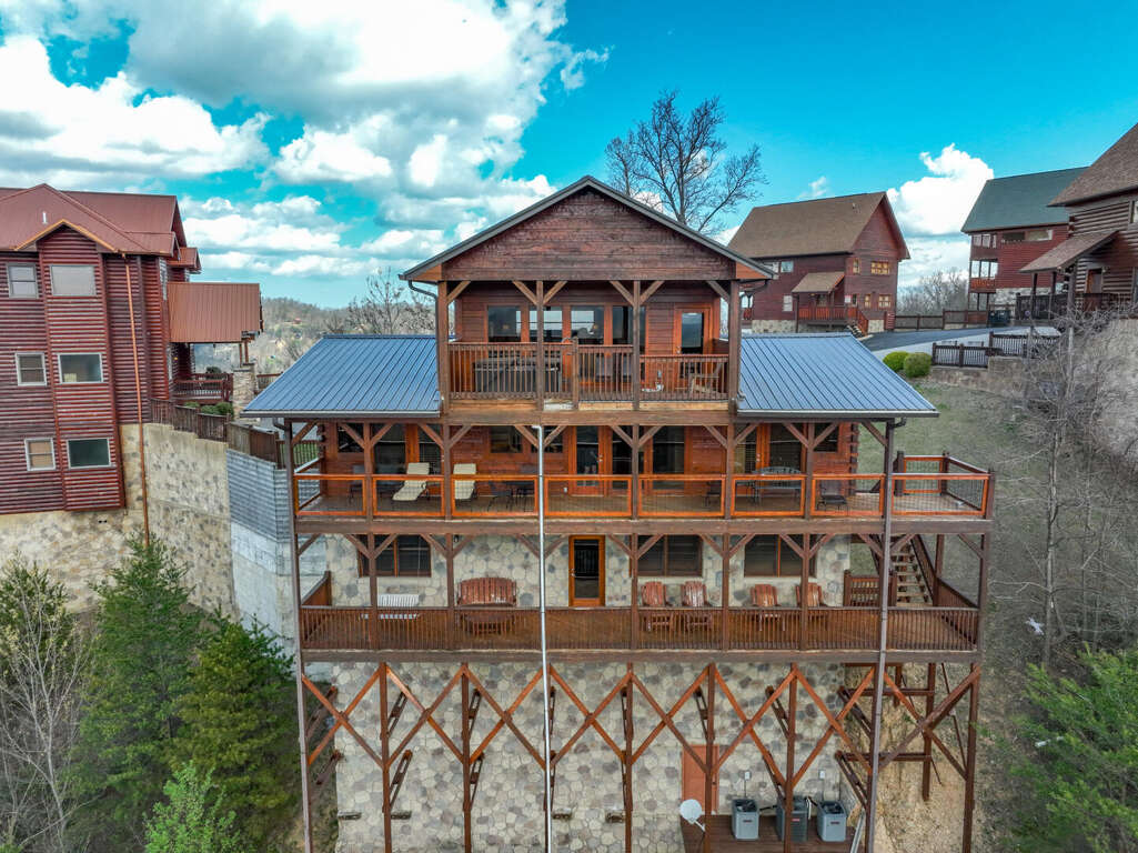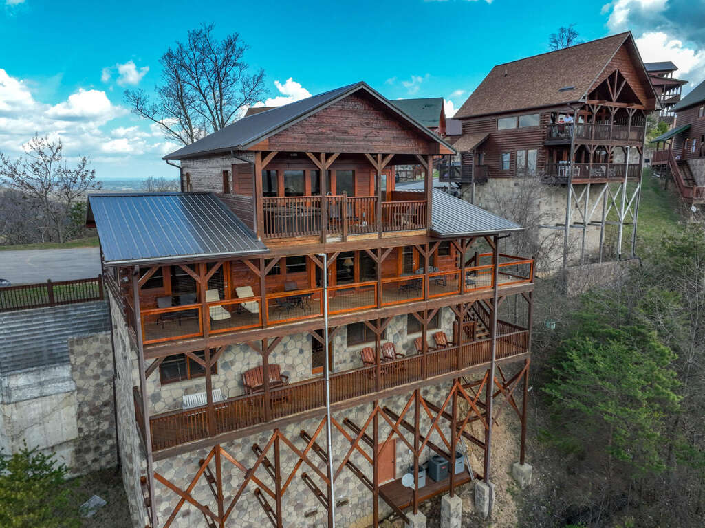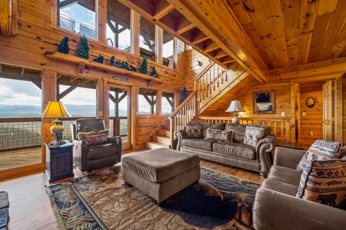 Perched majestically atop the exclusive Starr Crest Resort, Lookout Lodge is a striking three-story luxury cabin offering nearly 3,000 square feet of refined mountain living. This grand retreat truly lives up to its name — offering panoramic “above-the-clouds” views of the Great Smoky Mountains and sweeping vistas over Dollywood, where guests can enjoy the seasonal fireworks right from the deck. Designed for gatherings, celebrations, and lasting memories, this extraordinary home-away-from-home invites you to experience a mountain stay defined by elegance, comfort, and togetherness.