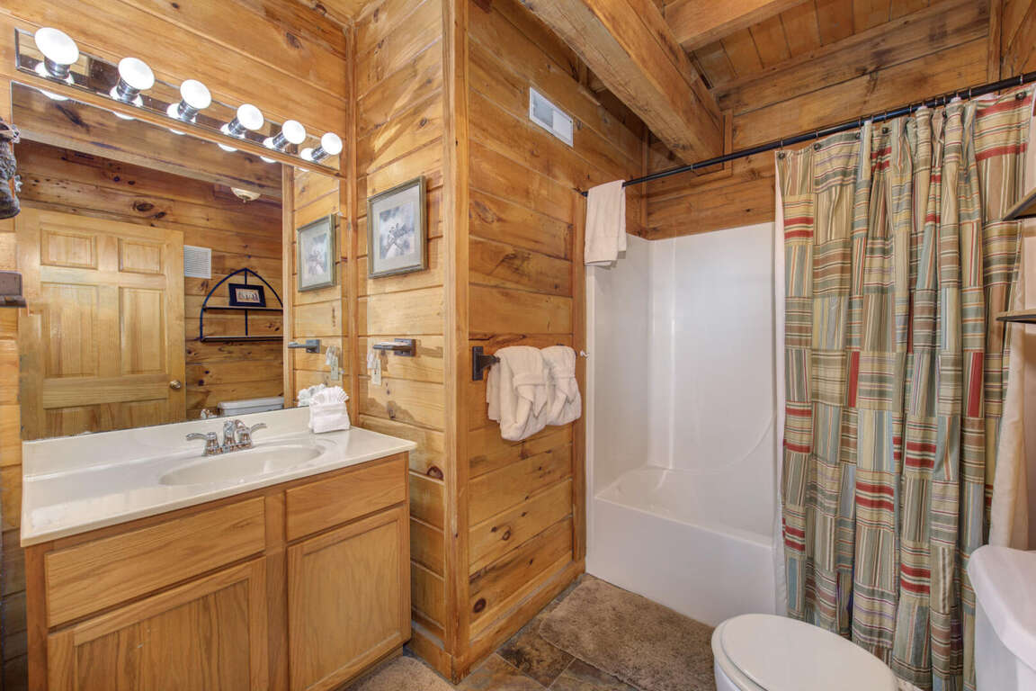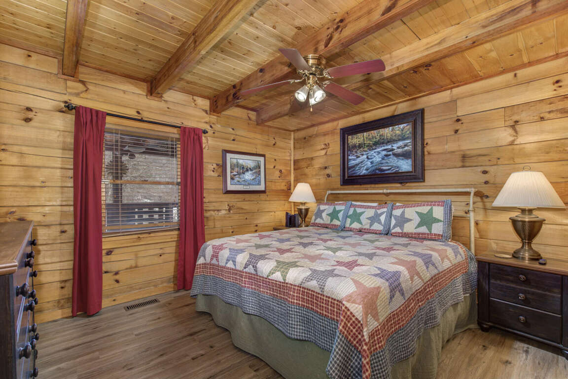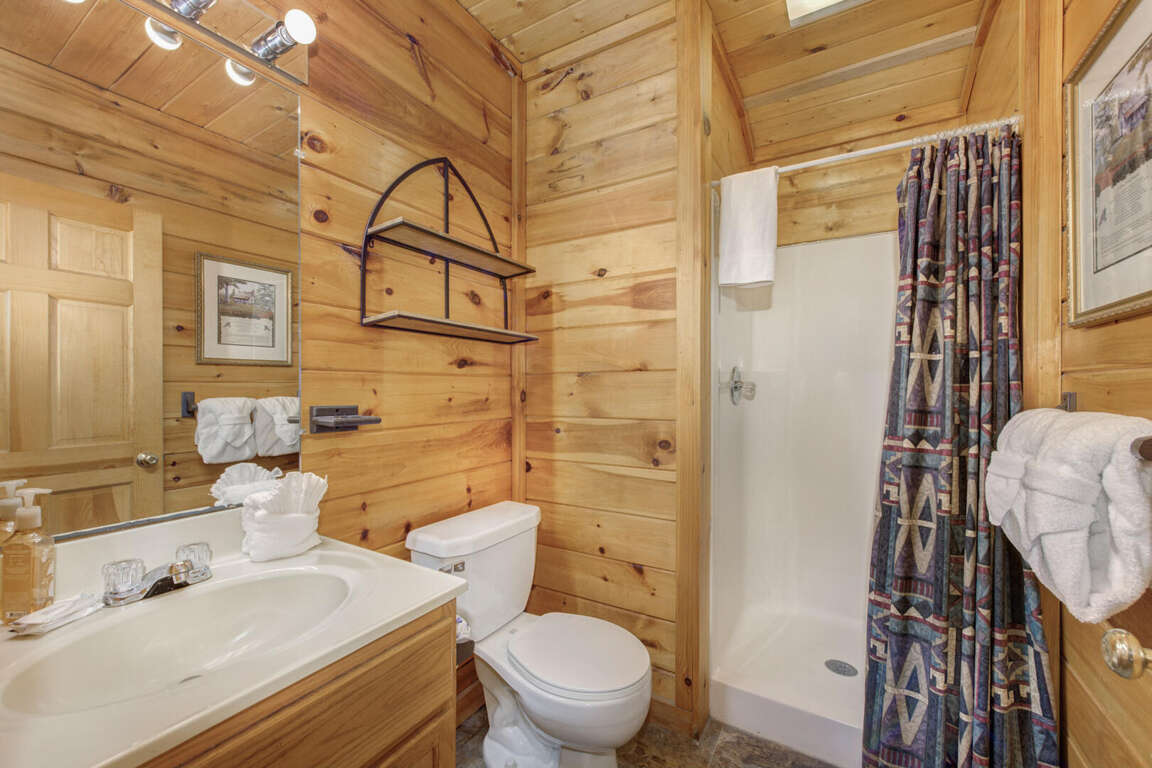 This cabin truly has everything you need for a wonderful Smoky Mountain vacation. It includes four bedrooms with king size beds, along with a sleeper sofa, this cabin is the perfect place for one large family or couples who enjoy traveling together. Upon entering the cabin, you will find a cozy living area, a fully equipped kitchen, two bedrooms with king beds, a full bathroom, washer and dryer, and a private back porch with hot tub and picnic table. Upstairs, are two king bedrooms, a bathroom, and a game room with a pool table, flat screen tv, and a fire place. Free WIFI is available.