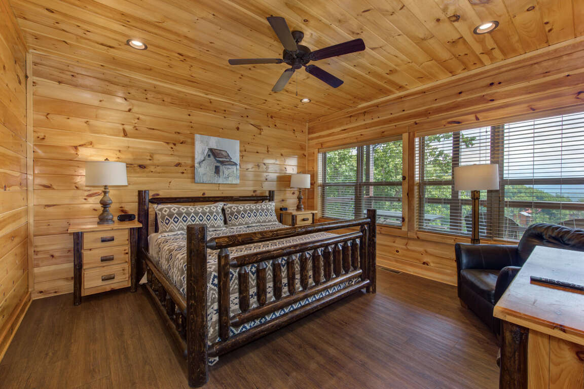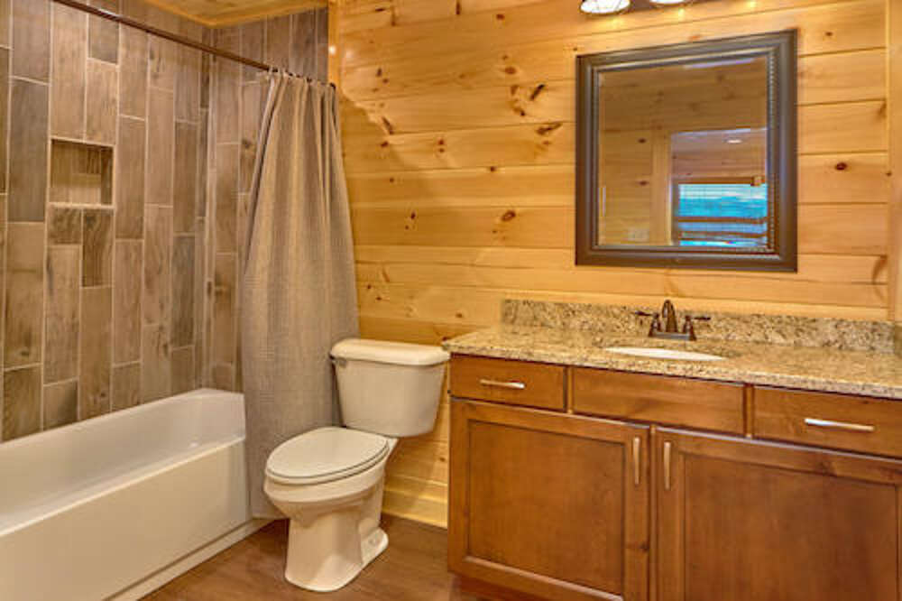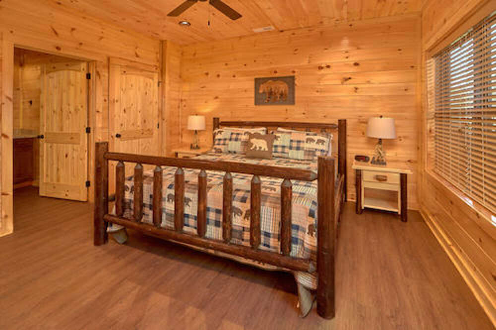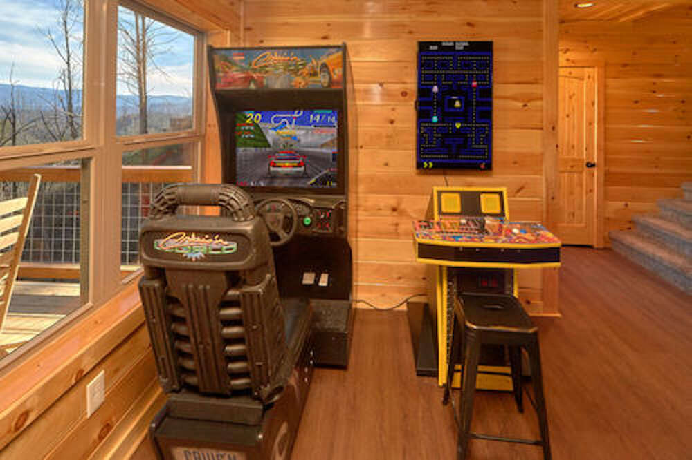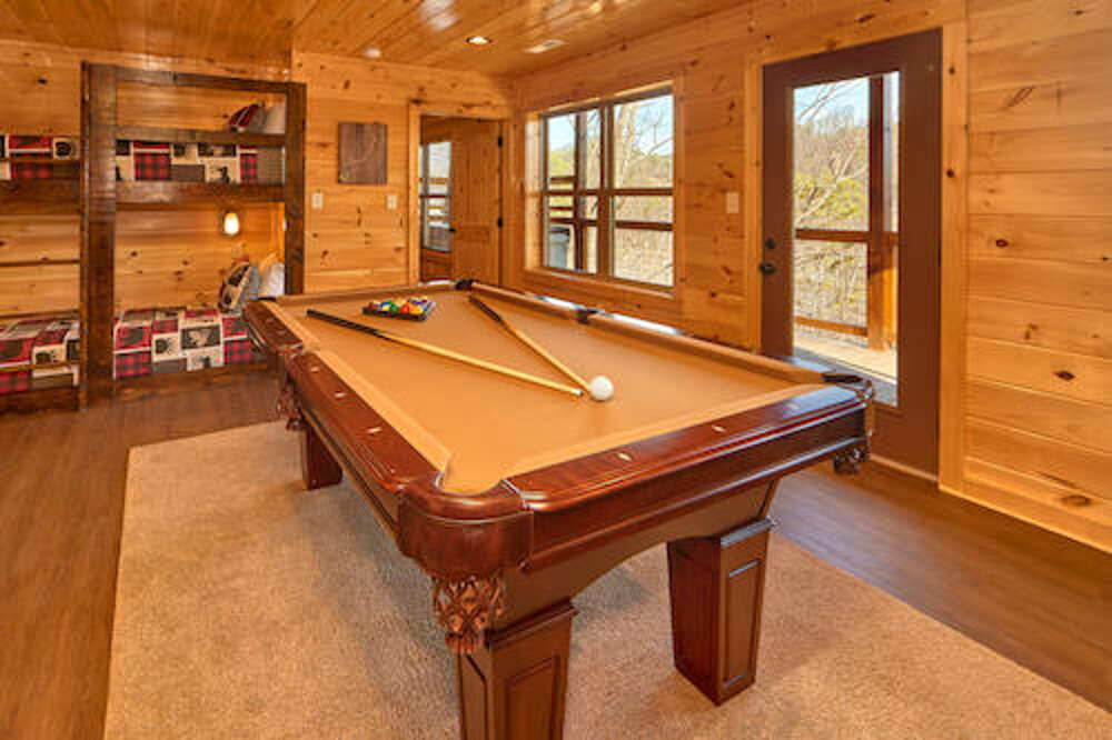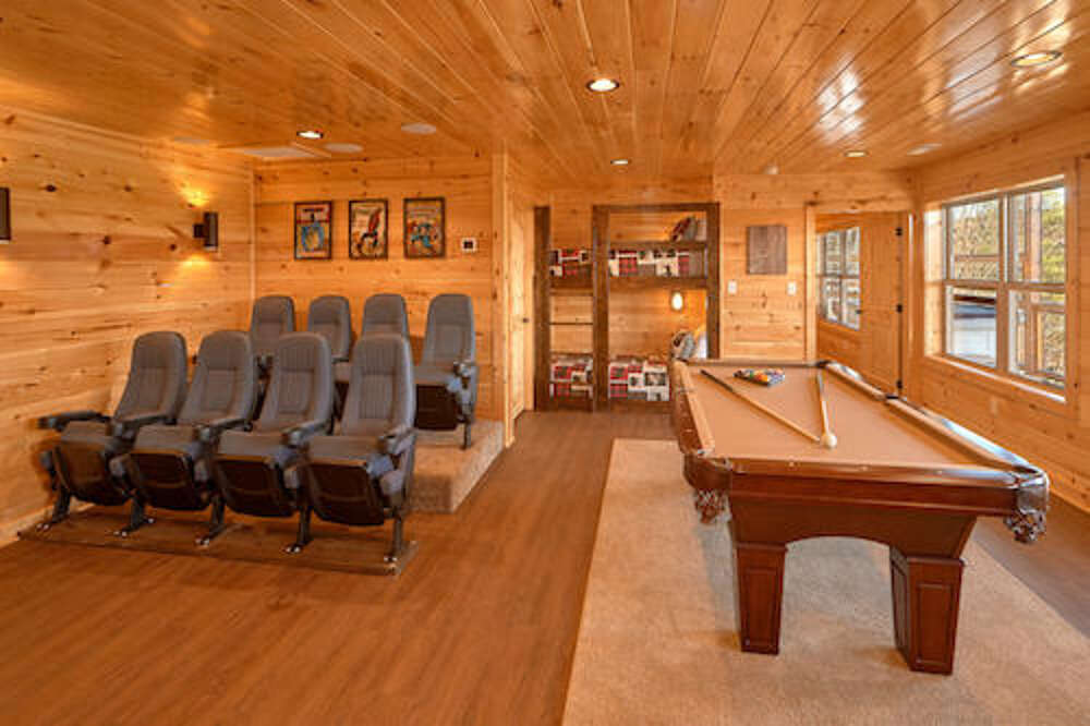 Majestic View is a gorgeous three-bedroom cabin located in the Walker Trail area. This spacious cabin is furnished with picture windows and provides beautiful views. Majestic Views sleeps 11 guests with three king beds, two twin bunk beds, one futon and three bathrooms. The natural colors and decor throughout the cabin bring the beauty of nature indoors. The spacious full kitchen is furnished with stainless-steel appliances and plenty of countertop space to prepare delicious meals. The entertainment area is equipped with a pool table, video arcade and a movie theater area with theater-style seating and large flat screen television. Out on the deck, guests can enjoy majestic views from the hot tub or rocking chairs. Majestic Views is only six miles from Dollywood theme park and Dollywood's Splash Country water park. Also, the cabin is just minutes away from other area attractions in Pigeon Forge and Gatlinburg.
