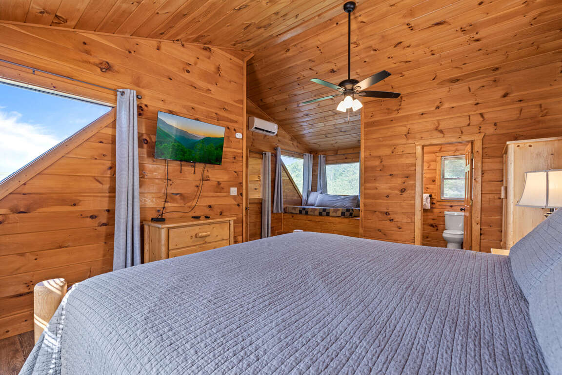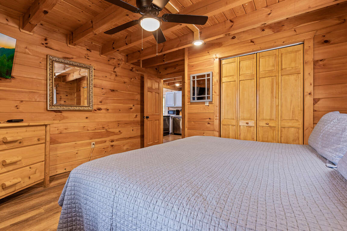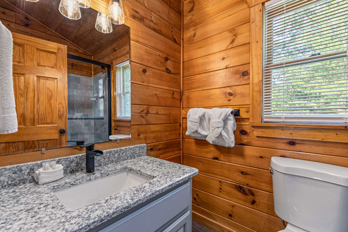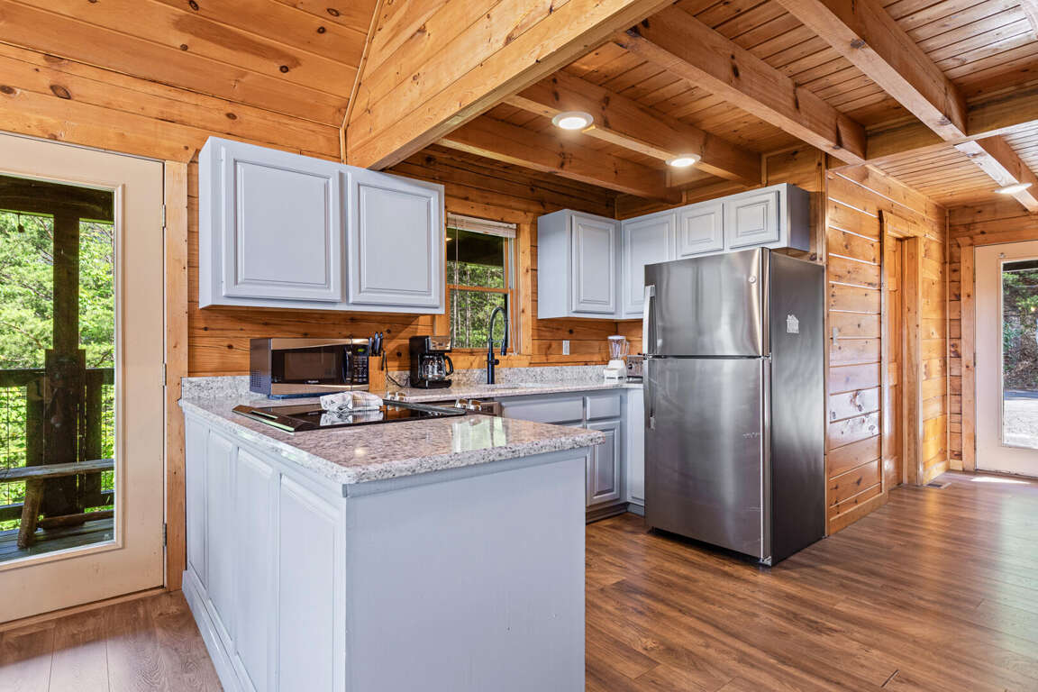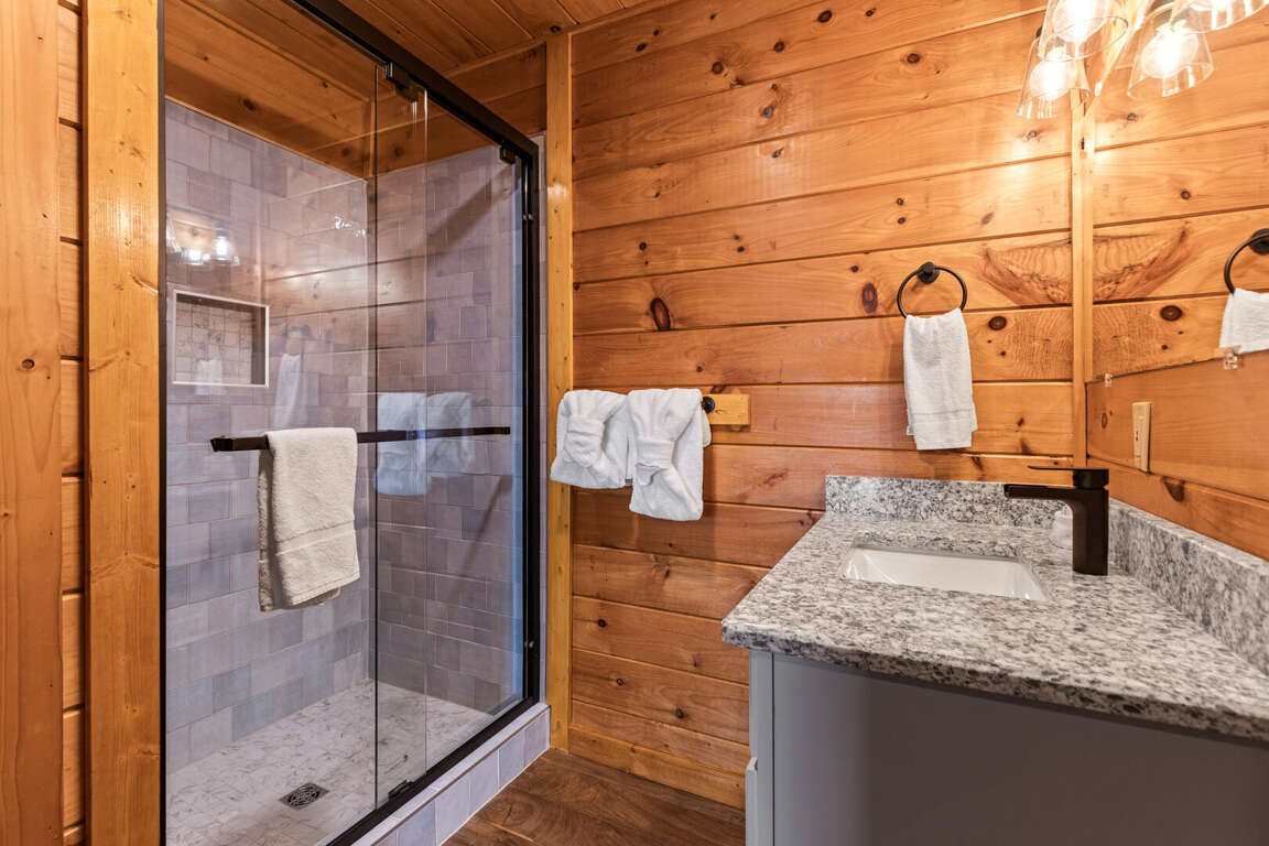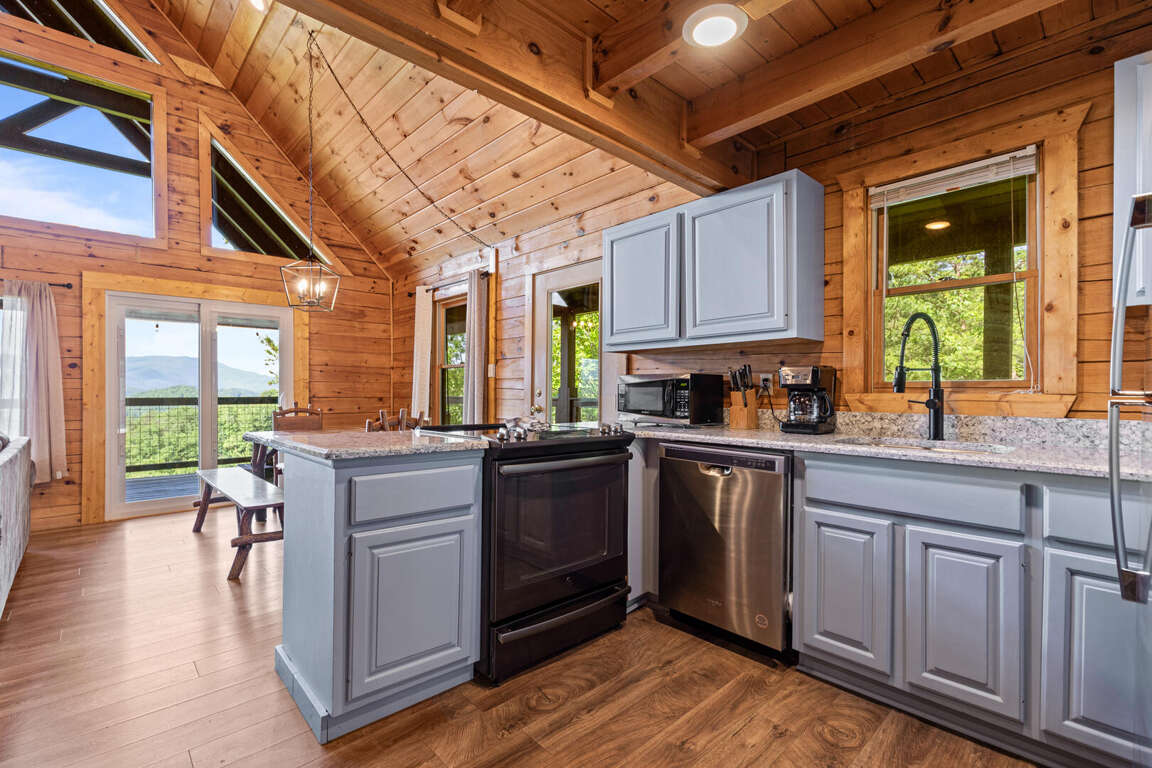 Updated in May 2024, Serenity Now is a serene three-bedroom cabin in Mountain View Court. This traditional log cabin home offers a rustic cabin feel with luxurious amenities. Serenity Now sleeps 12 guests with two king beds, one queen bed, two queen sleeper sofas, twin bunk bed and three bathrooms. Guests will enjoy the privacy of being tucked away in the mountains but also love the convenience of being minutes from exciting area attractions. The large floor-to-ceiling stone fireplace is the centerpiece of the living room. Guests can enjoy a movie on the TV or beautiful mountain views through the picture windows. The full kitchen offers guests the option to create delicious home-cooked meals to enjoy at the large dining table or outdoor picnic table. Kids and adults alike will enjoy friendly competition playing ping pong and classic video games. Out on the deck, guests can take in the breathtaking mountain views from the relaxing hot tub and deck rockers. Serenity Now is only 6.5 miles from Dollywood theme park and Dollywood's Splash Country water park. Also, this cabin is only minutes away from other area attractions in Pigeon Forge and Gatlinburg.