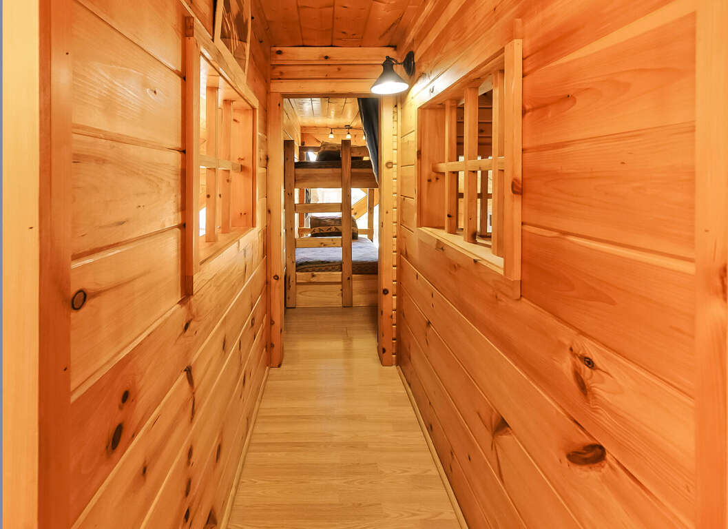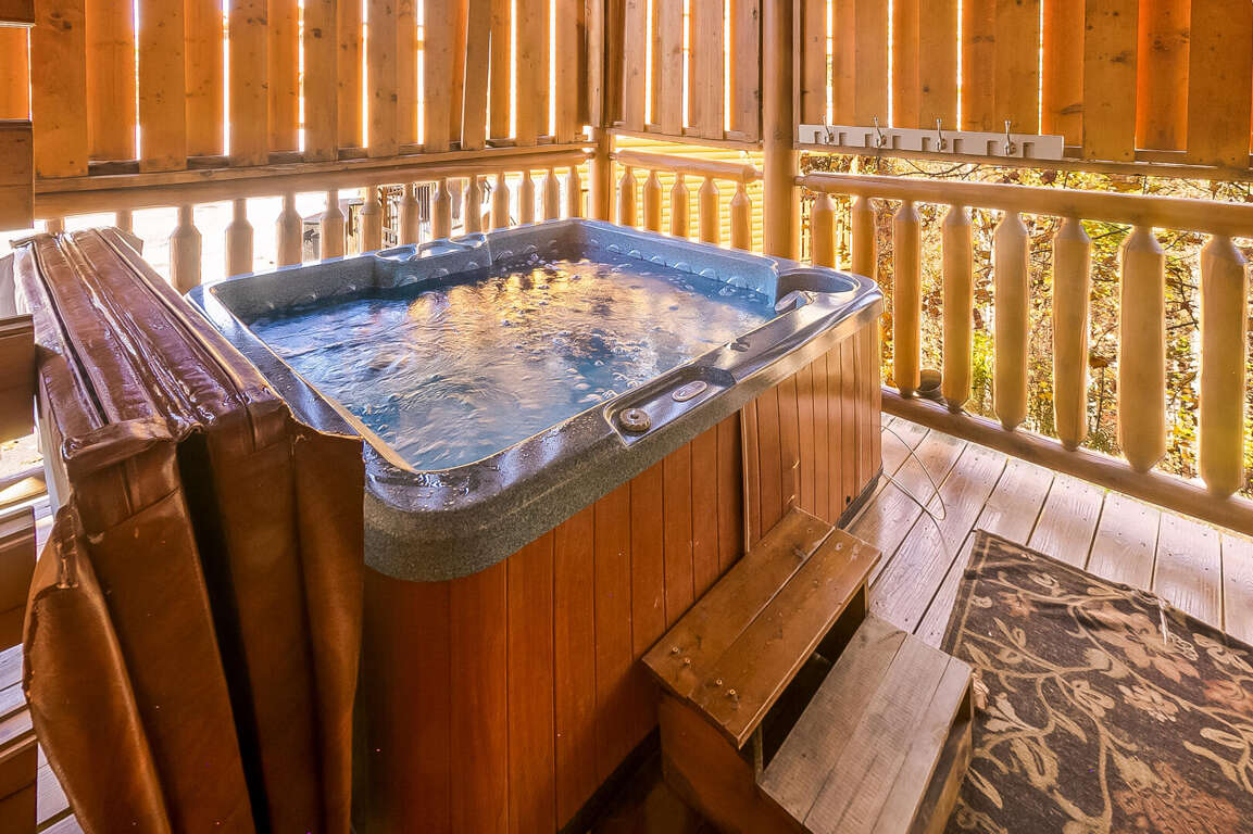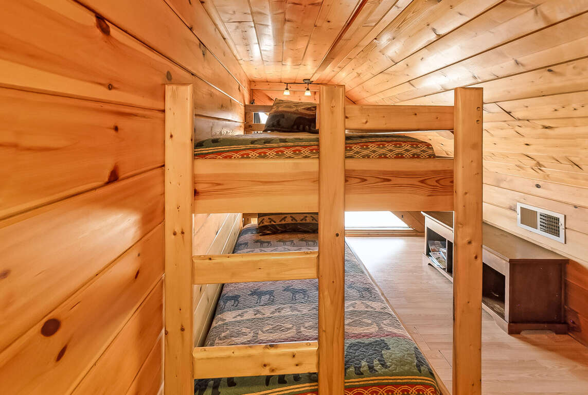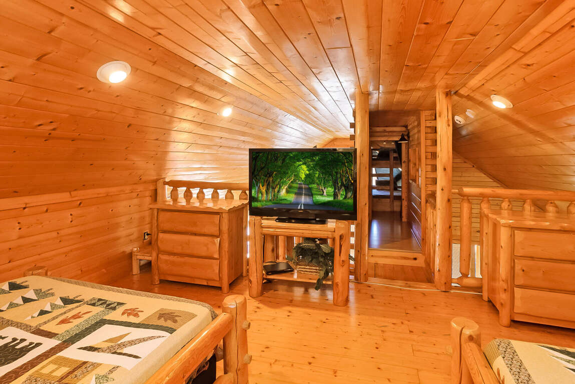 Center of Attention is a beautiful cabin that offers a wonderful experience in the smokies! With 2 master suites, a 2-queen bed loft area and a children's bunk room, this cabin sleeps 12. Walk in, through the kitchen you will see your dining room and living room (with electric fireplace). To the left is a master suite. To the right there is a door that leads to the private outdoor hot tub, perfect for those chilly nights. Up the first flight of stairs, you will find a half bath and a game room/ lounge area equipped with a pool table, foosball table, golden T video game and multi-arcade video game. Beautiful outdoor balcony with a view. On this floor there is also another master suite with a TV. Enjoy the tree house feel of the adorable loft area that you can see from the Rec room. The loft includes 2 sleeping areas: 1 with 2 queen beds and a TV and 1 with a twin bunk bed. This is a pet friendly property.