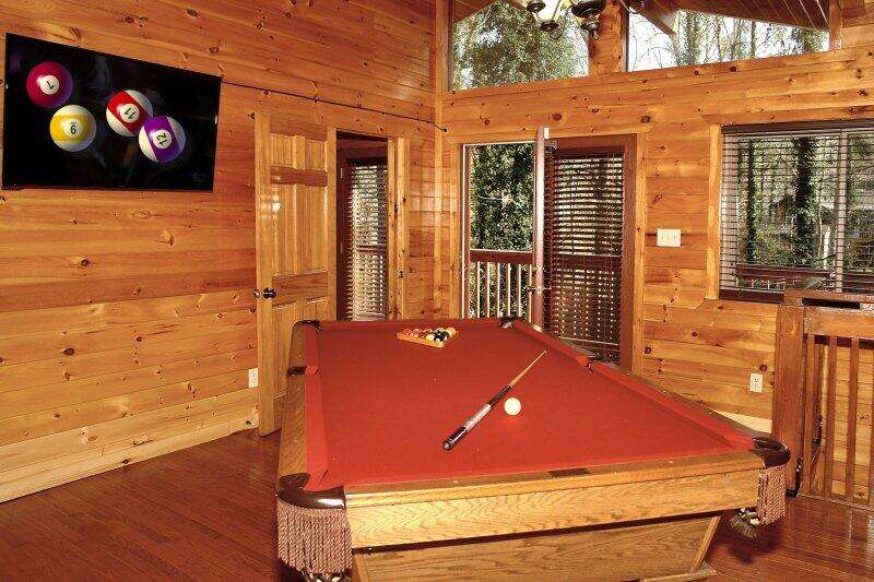 This beautiful wooded mountain retreat is located minutes away from downtown Gatlinburg, allowing for convenient, easy access to attractions & entrance to The Great Smoky Mountains National Park. Laurel Manor features four bedrooms & three bathrooms with a sleep occupancy of 14. It offers two king bedrooms & two bedrooms with a set of twin bunk beds in each room. The two large living room spaces provide plenty of room for gathering and celebrating special occasions with friends & family Large fully stocked kitchen with updated stainless appliances & farm style kitchen table. Enjoy hours of fun in the game room with pool table, multi-cade arcade style game & large screen television or kick back in the bubbling hot tub for some real R & R. When the stars come out, head out to the large paver patio with gas firepit and rock the night away under the stars enjoying your own smore party. Book today for your next mountain vacation.