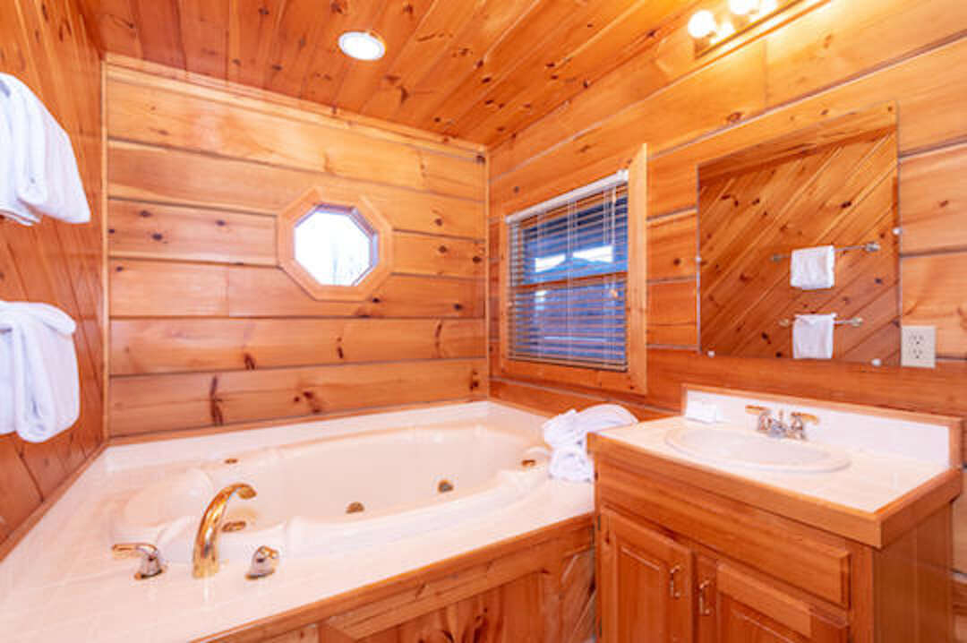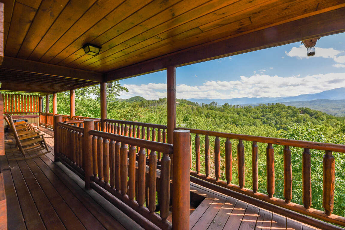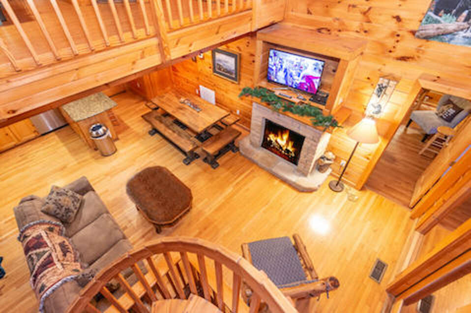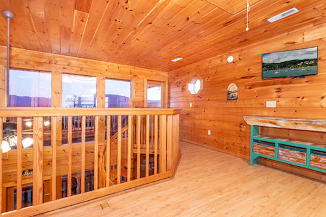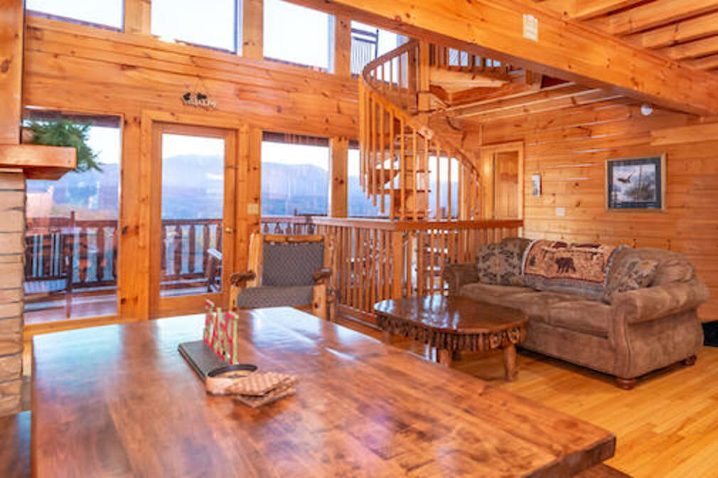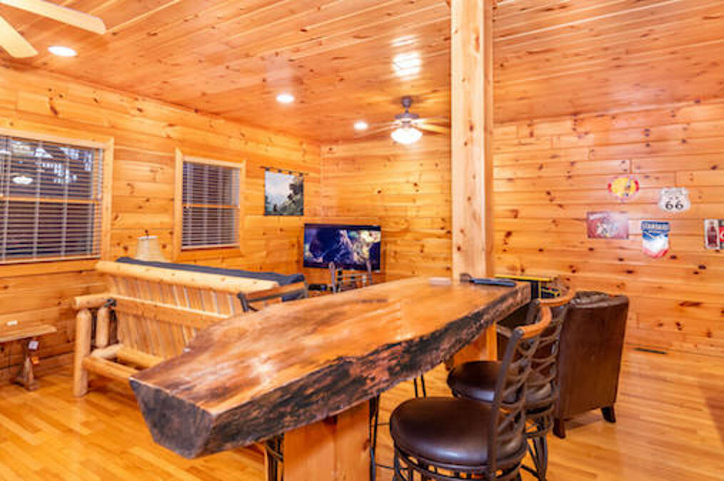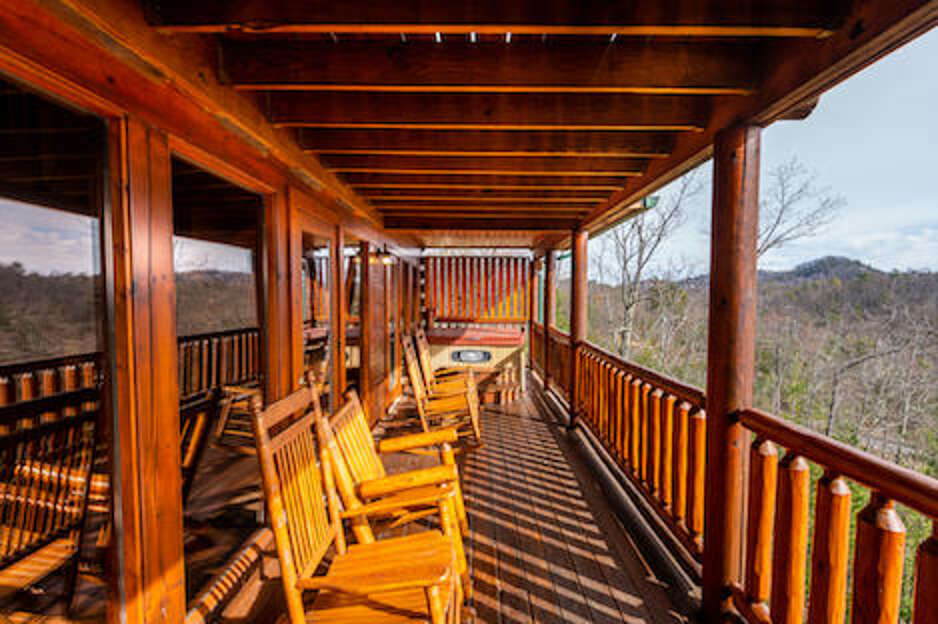 Starr Crest Lodge is a gorgeous four-bedroom cabin located in Starr Crest Resort. This inviting and spacious cabin is an amazing retreat for the whole family. Starr Crest Lodge sleeps 15 guests with one king bed, five queen beds, queen sleeper sofa, futon and four bathrooms. Guests can enjoy quality family time in the living room watching movies on the couch or fellowshipping around the beautiful stone fireplace. The full kitchen is the perfect place to create delicious meals together to enjoy at the large dining room table. The game room will keep the whole family entertained with pool, air hockey, foosball and a video arcade system with 48 classic games. The three decks offer spectacular views of Mt. LeConte that can be enjoyed from the hot tub or rocking chairs. Starr Crest Lodge is only 5.5 miles from Dollywood theme park and Dollywood's Splash Country water park. Also, this cabin is only minutes away from other area attractions in Pigeon Forge and Gatlinburg.