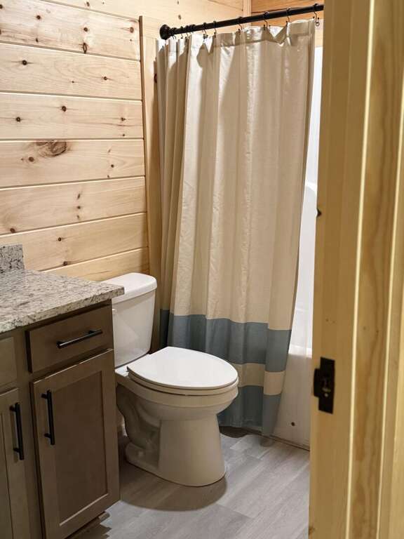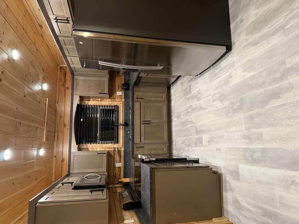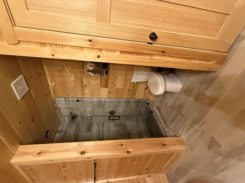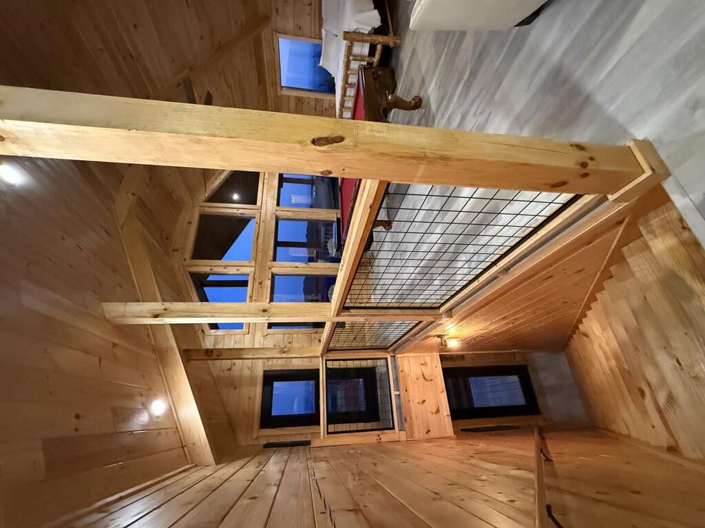 Step inside and discover a warm, wood-wrapped sanctuary where comfort and charm meet. The spacious living room welcomes you with plush seating, a cozy electric fireplace, and all the comforts of home — perfect for curling up with a book, sharing stories, or simply soaking in the glow of the mountains through expansive windows.