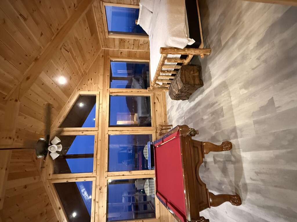 Want a little fun before bed? Head to the game loft for some friendly competition — challenge your crew at the pool table or let nostalgia take over with the classic multicade arcade. For those who crave deep relaxation, the private hot tub on the deck awaits, bubbling and steaming beneath the stars.