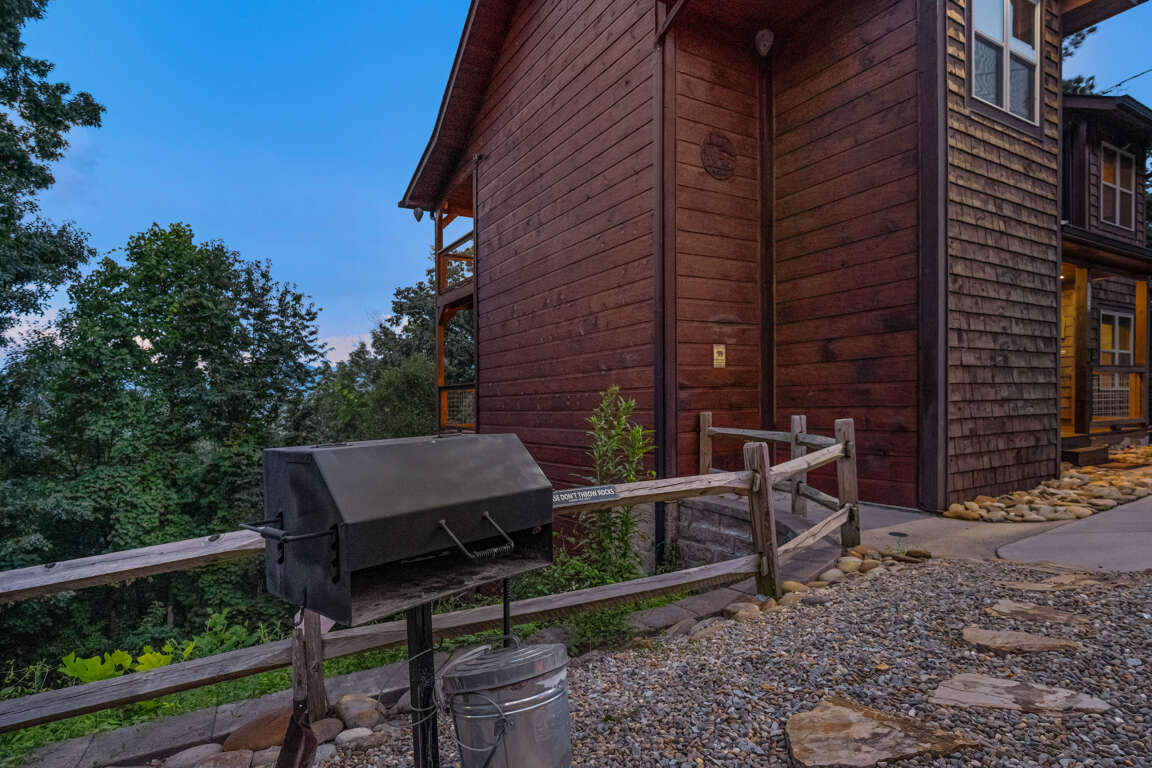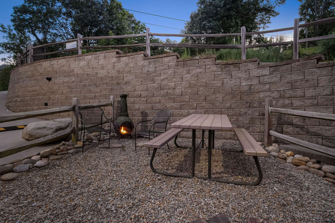 In front of the house beside of the paved parking is our grill area. The Chef can look over downtown and the Smokies while they are searing your steaks to perfection. Feel free to take your meal inside or use the outdoor picnic area to enjoy the surroundings. Sit around the fire-pit and enjoy the fresh air of the Smoky Mountains!
