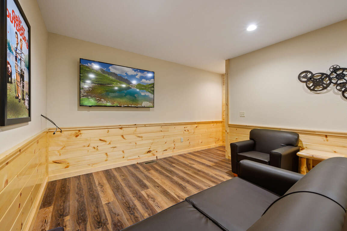 Exploring the great outdoors, shopping in town, and playing at the cabin will certainly leave everyone ready for bed at the end of each day. Each bedroom is equipped with a flat-screen TV and an en-suite bathroom. One king bedroom with en-suite bathroom on the lower level and one king bedroom with en-suite bathroom on the main level for ultimate privacy. The Queen Sleeper Sofas are in the living and media room. There are also 2 full bathrooms plus 1 half bath, so everyone will be able to get ready for morning hikes and evening dinner shows without a hassle.