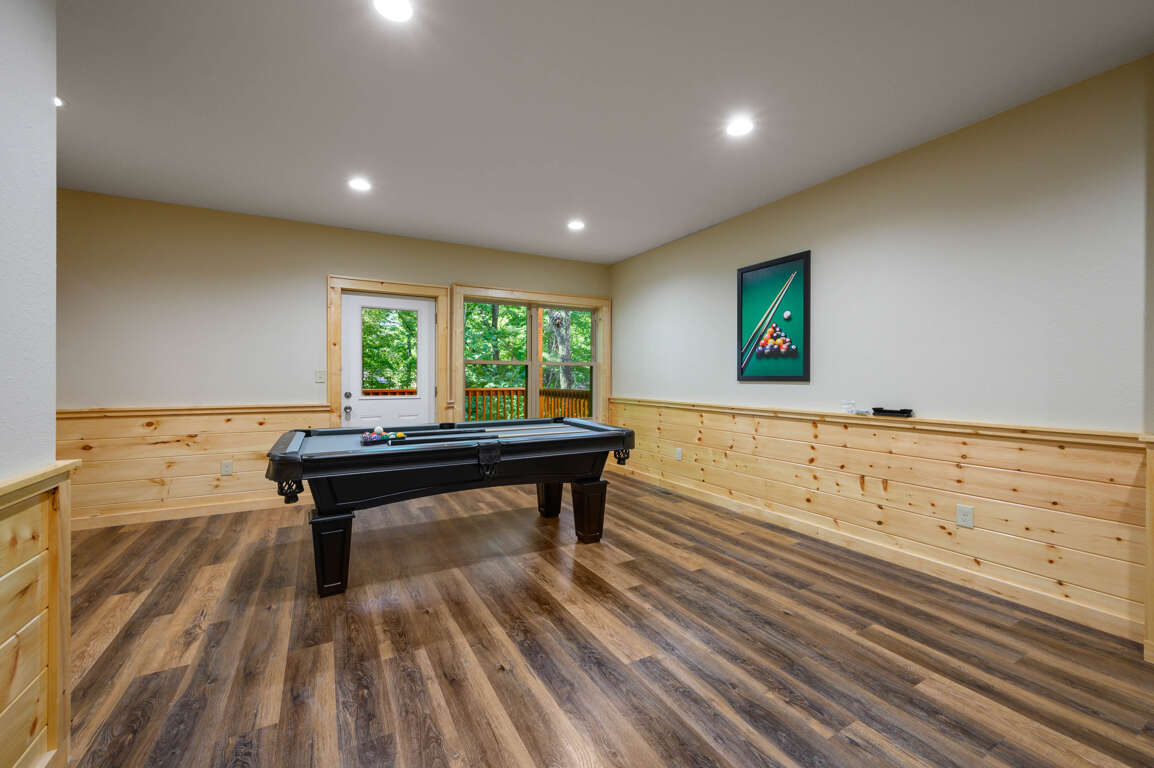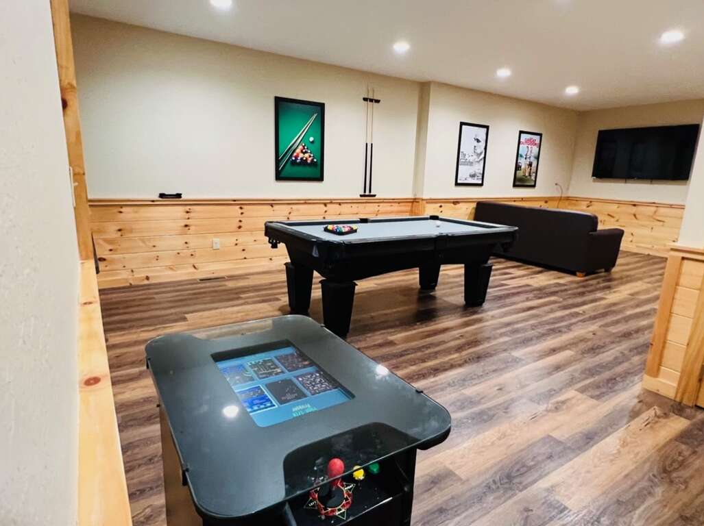 It’s playtime! Downstairs, Shoot pool with your pals with cushy ottoman seating while waiting for your next turn and catch the game on the big screen TV. Play 60 different old-school arcade classics like PacMan, Donkey Kong, or Galaga. There is also a second sleeper sofa for additional sleep space.
