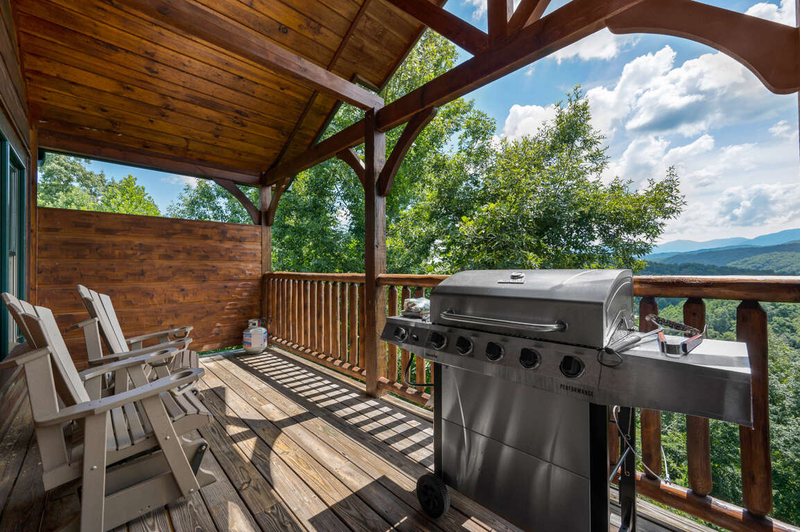 1664 sq.ft Cabin in scenic Gatlinburg, TN, named 'Smoky Mountain High'. It features 2 bedrooms, a cozy fireplace, community pool access, hot tub and grill.
