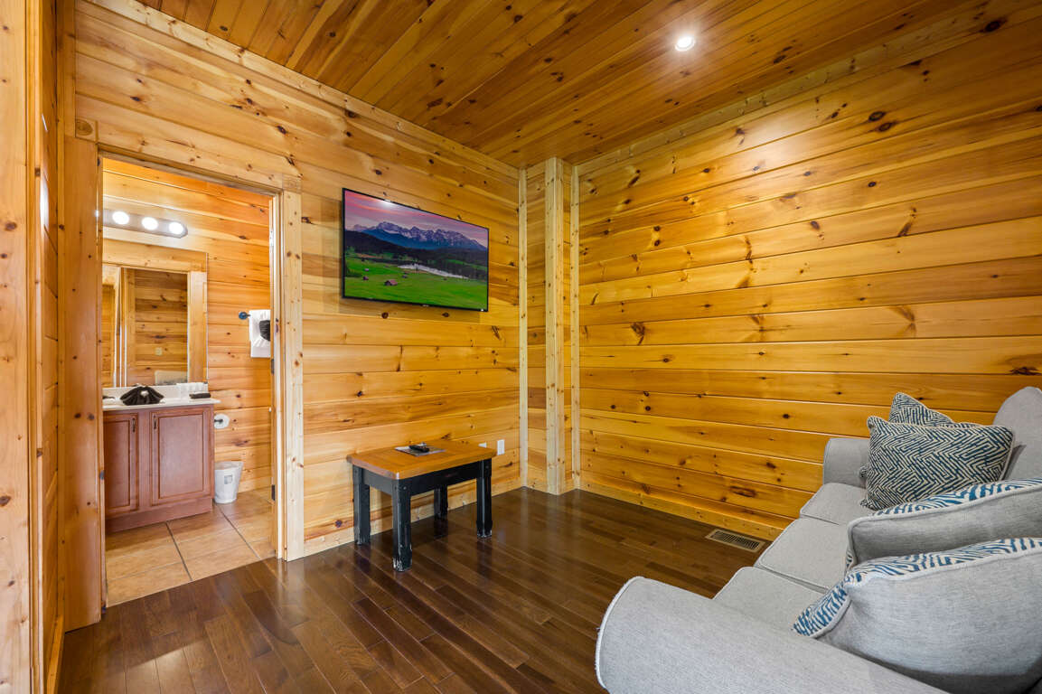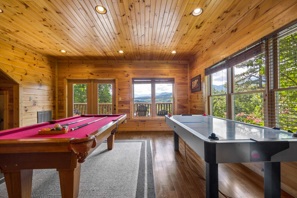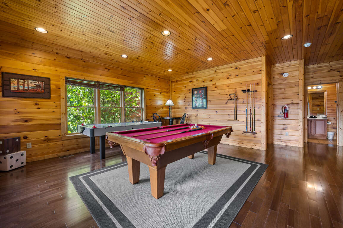 Exploring the great outdoors, shopping in town, and playing at the cabin will certainly leave everyone ready for bed at the end of each day. There are plenty of cozy options spread across both floors — each bedroom comes with a flat screen TV. Choose from 2 King bedrooms, 1 Queen Sleeper Sofa or 1 full Sleeper Sofa (one located in the game room downstairs and the other upstairs in the living room).