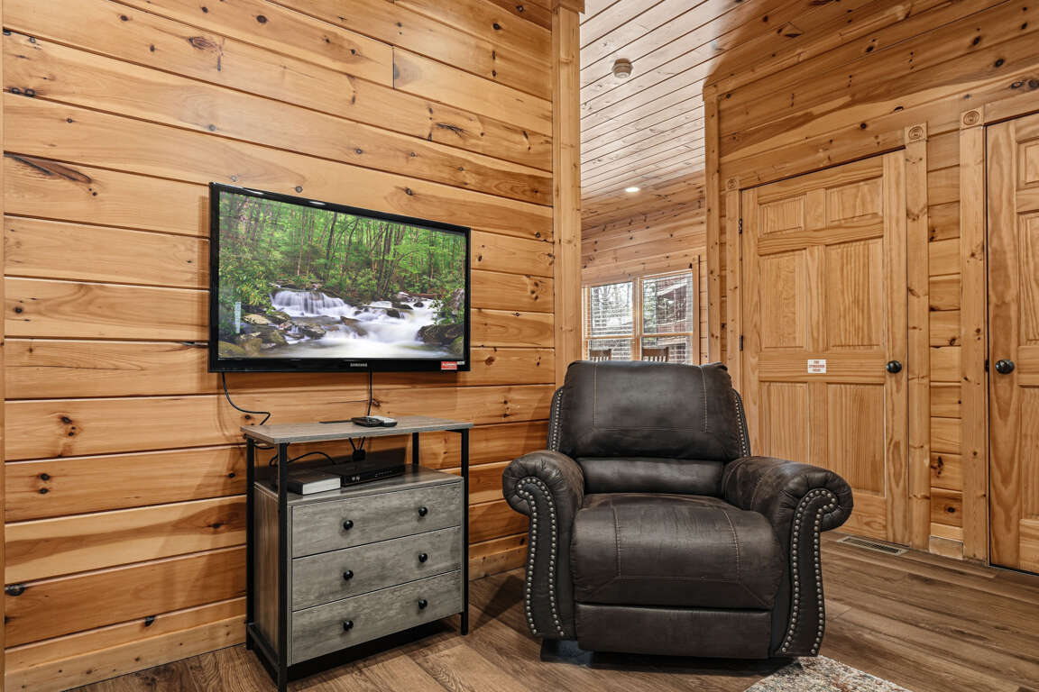 Start a tournament and see who becomes the Smoky Mountain champion. When it’s time to relax, kick back on the recliner or queen sleeper sofa and enjoy a movie together.