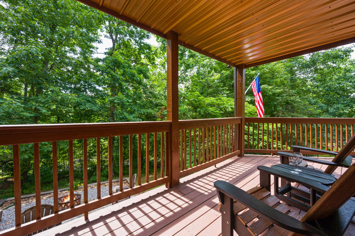 If you want fresh air, step outside to a covered deck and a small yard to explore. Unwind in the hot tub after a busy day exploring the Smoky Mountains, or use the rockers to slowly sway as you listen to the relaxing sounds of nature and drink your morning coffee.  Security cameras overlook the firepit and parking area.