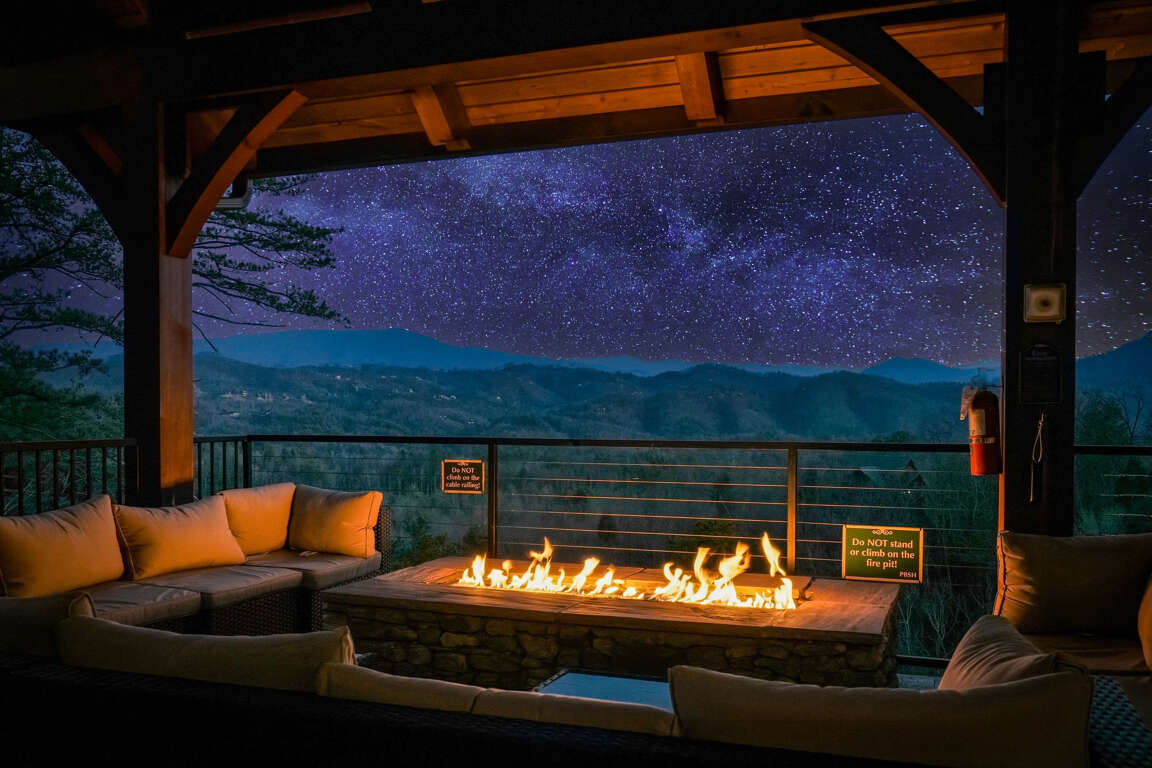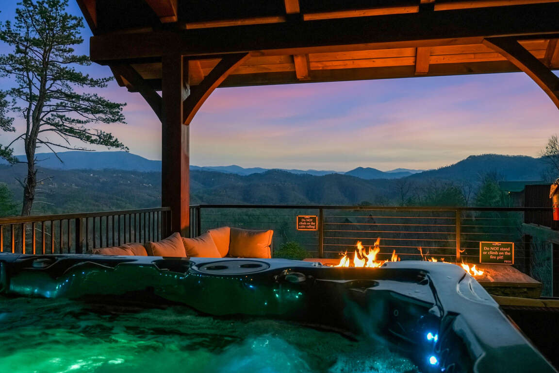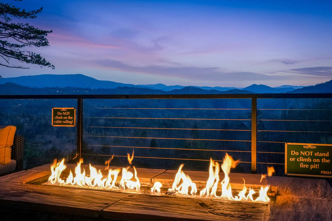 When you walk through the beautiful oak-and-iron front door, you will find a fully stocked kitchen with a commercial gas range. Everything you would need to cook for large groups. Even the refrigerator is interactive. You can tell Alexa to play music while you cook, look up recipes on YouTube, or scroll through guests' vacation photos. Custom furniture and lighting throughout. Living room with fireplace. Two king master suites on the main level, one of which is handicap-accessible and includes a handicap-accessible bathroom with a roll-in shower. The views will knock you out!