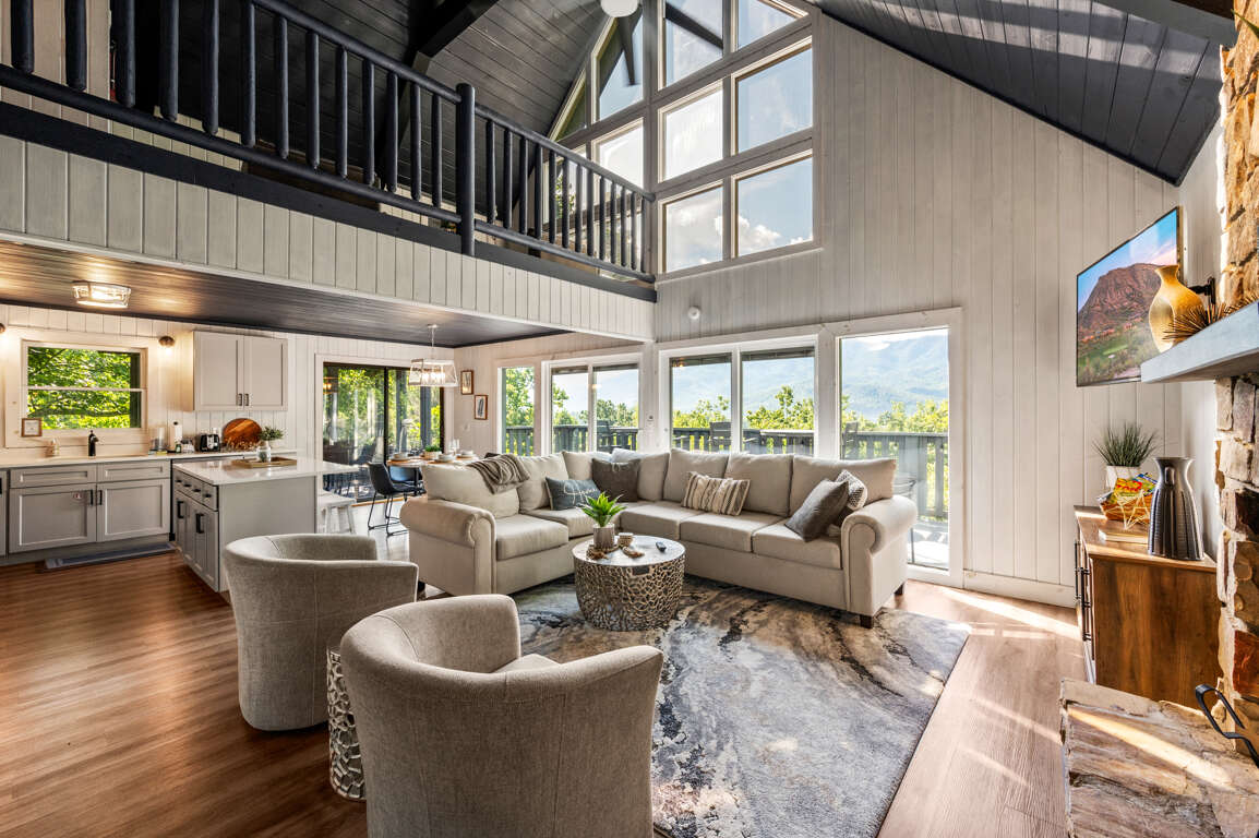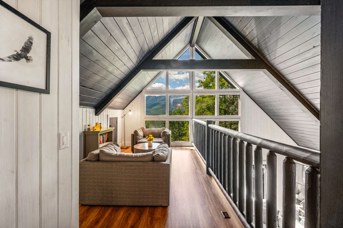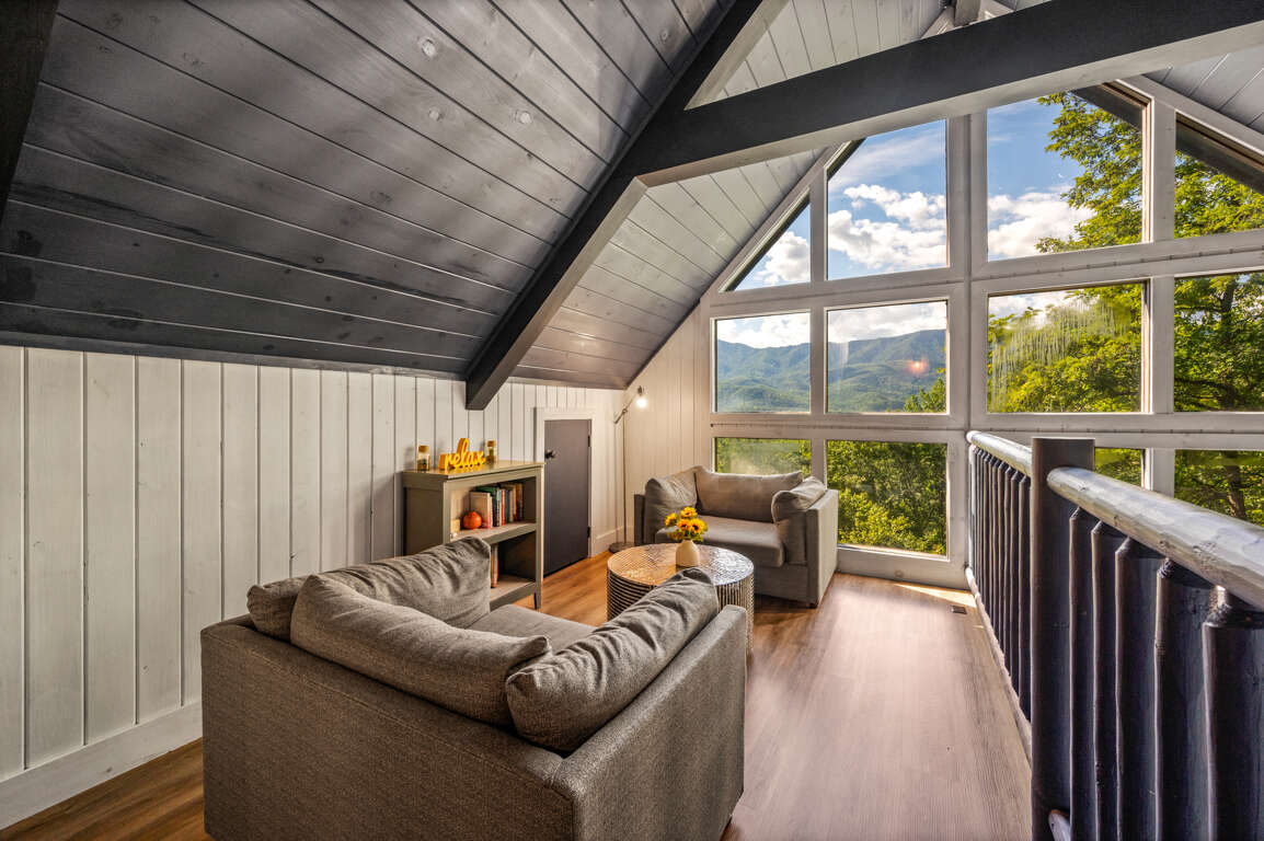 After a day of fun at Dollywood and other Gatlinburg attractions, you’ll be ready to cozy up in a comfortable bed in one of the three bedrooms. Upstairs you’ll find a loft perfect for reading with floor-to-ceiling windows as well as the king suite with a private bathroom.