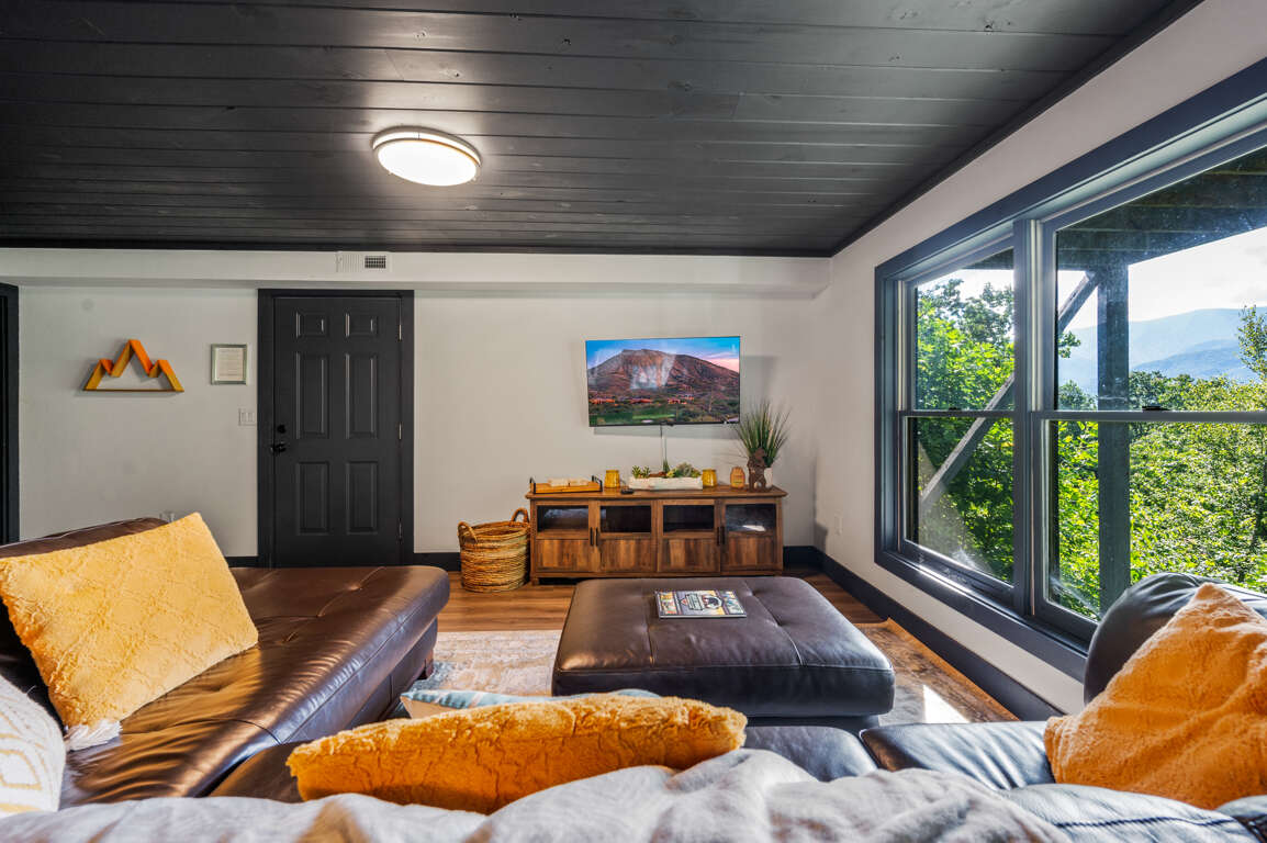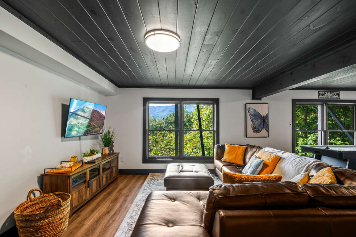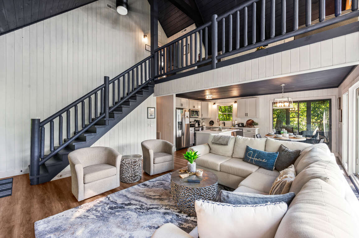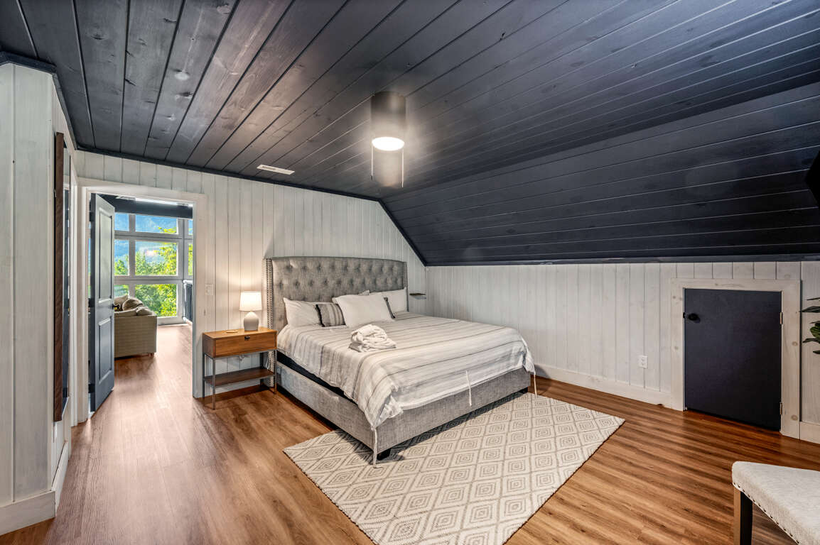After a day of fun at Dollywood and other Gatlinburg attractions, you’ll be ready to cozy up in a comfortable bed in one of the three bedrooms. Upstairs you’ll find a loft perfect for reading with floor-to-ceiling windows as well as the king suite with a private bathroom.