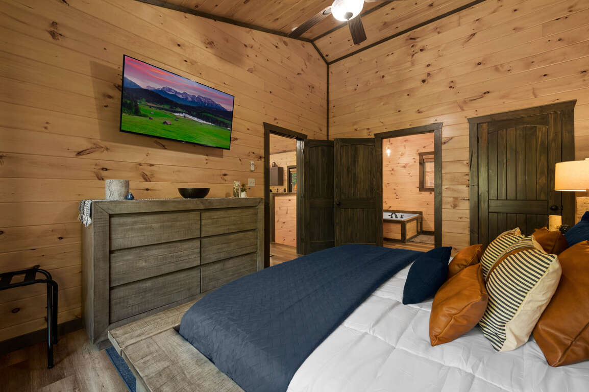 Bedrooms: Each bedroom is equipped with a flat-screen TV and an en-suite bathroom, providing ultimate privacy and comfort. One king bedroom is located on the lower level, and another on the main level. With 2 full bathrooms, getting ready for your adventures is hassle-free.