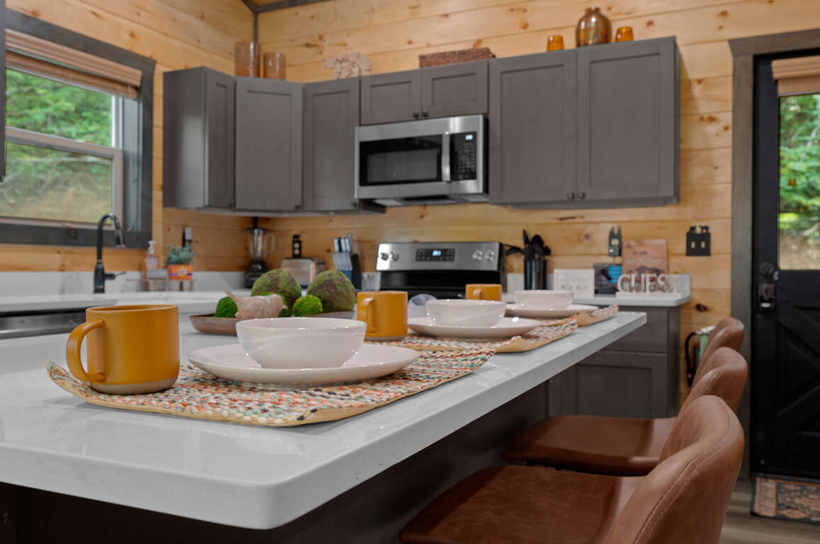 Kitchen: The fully equipped kitchen is ready for all your culinary needs, from meal prep to snack time. With a refrigerator, stove, microwave, toaster, blender, crockpot, and dishwasher, plus all the necessary cookware and dinnerware, you’ll have everything you need. Extra counter space and bar seating for 3 make meal times a breeze.