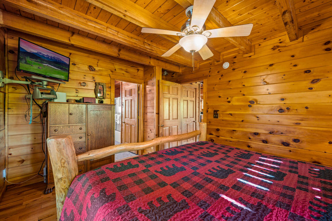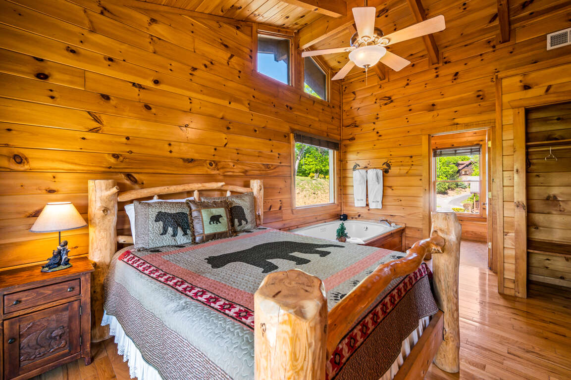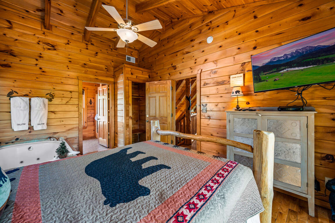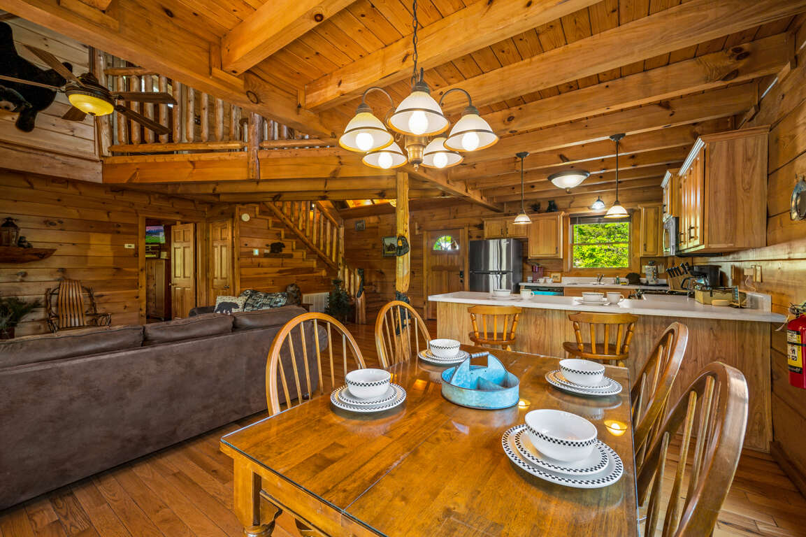 Explore the comfort of Hibernation, a two-bedroom cabin in Pigeon Forge, TN. The 1400 sq ft vacation rental offers full amenities, a community pool, and much more to make your stay memorable.