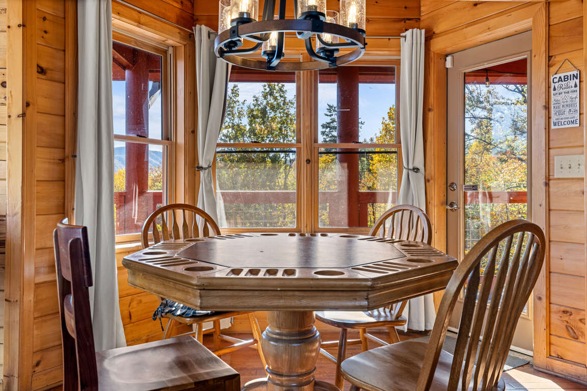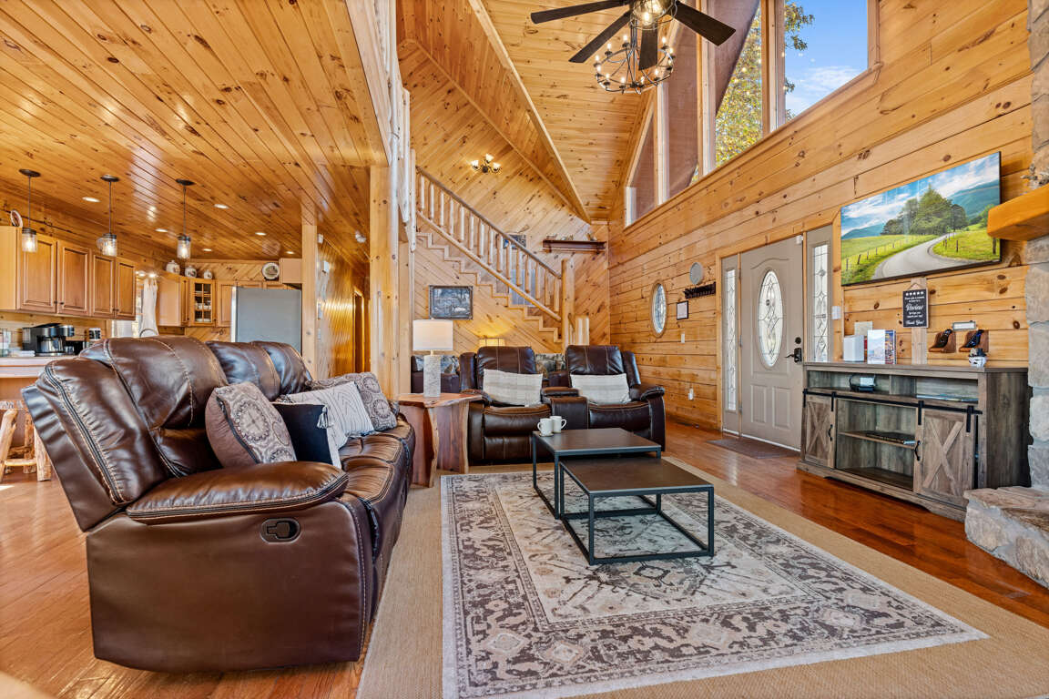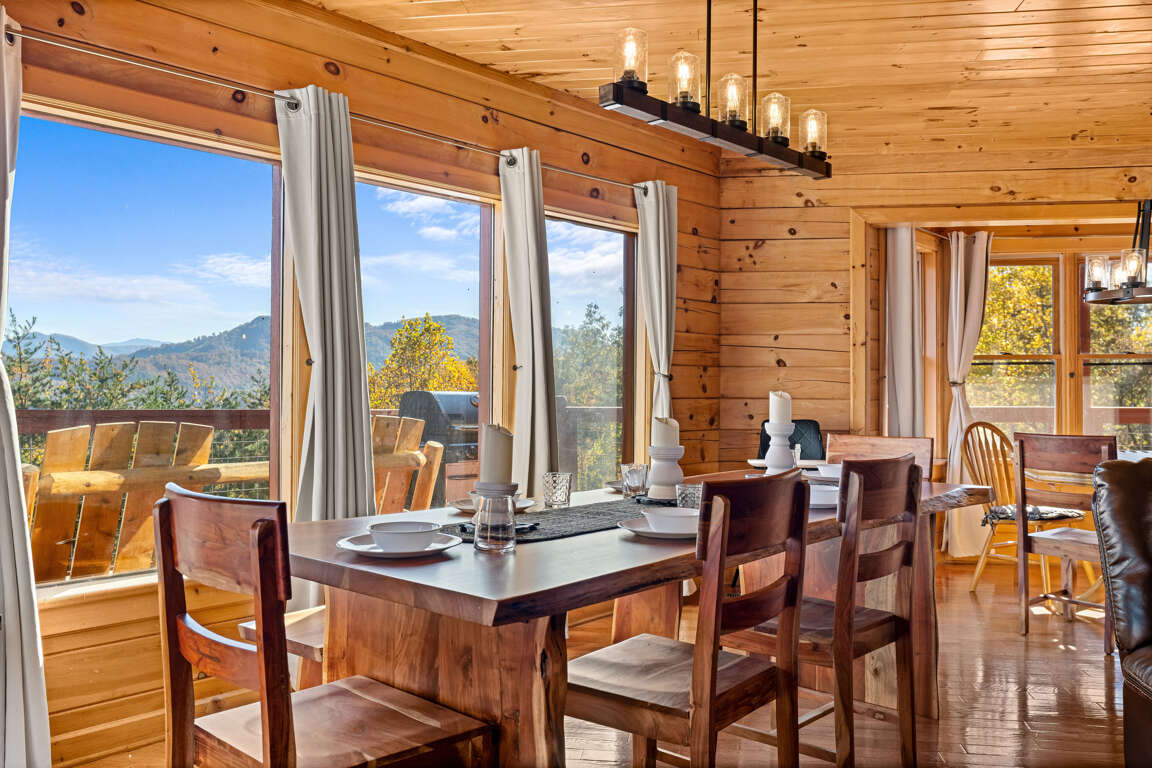 Nestled among the trees and surrounded by mountain views, this five-bedroom cabin offers the perfect wilderness retreat for a large family or group of friends! Cabin living at its finest, this cabin boasts unmatched amenities.