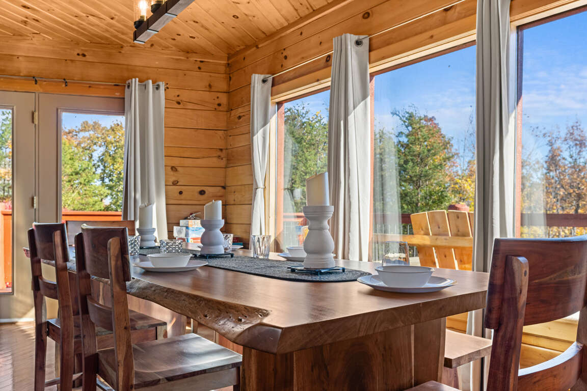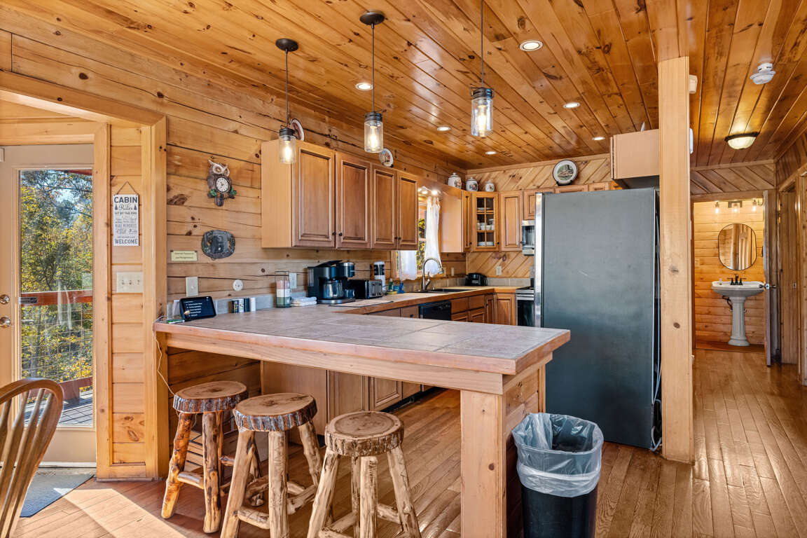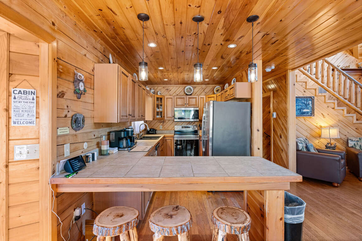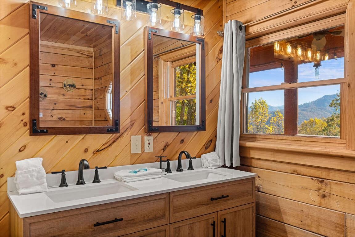 Nestled among the trees and surrounded by mountain views, this five-bedroom cabin offers the perfect wilderness retreat for a large family or group of friends! Cabin living at its finest, this cabin boasts unmatched amenities.