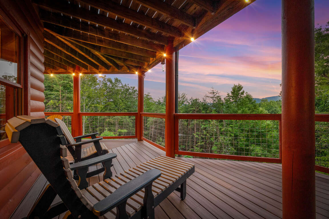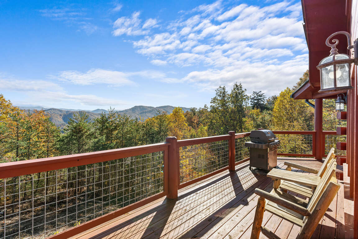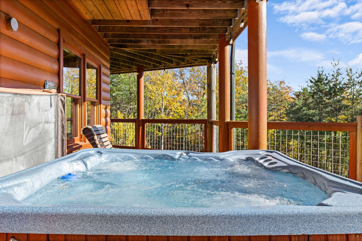 Enjoy the pleasant Tennessee weather from the wrap-around balcony and deck, gather around the natural wood fire-pit, grill out, or soak in the bubbling warmth of the private hot tub.