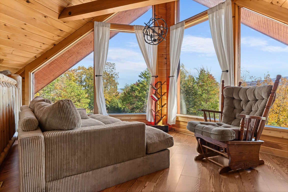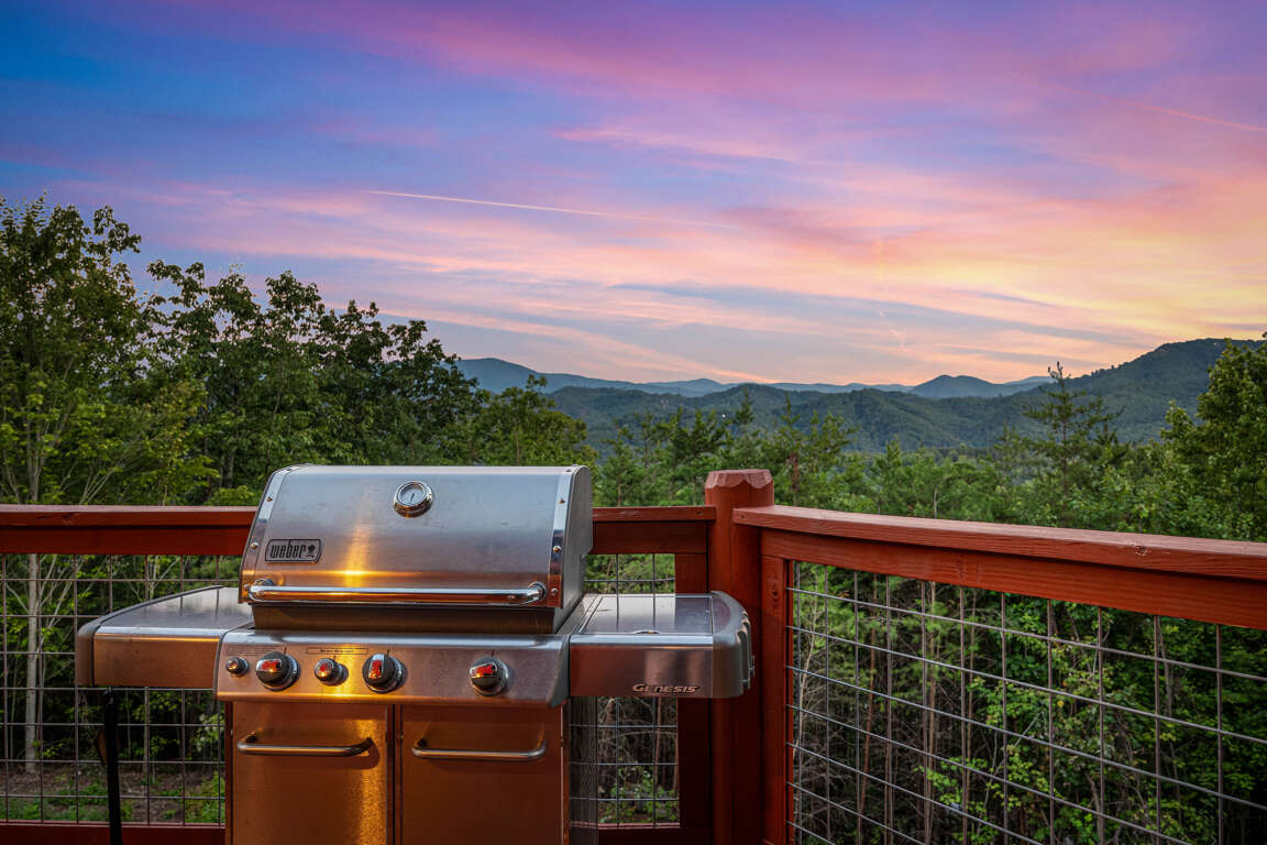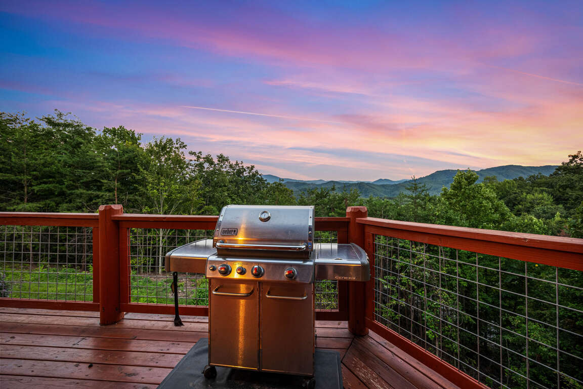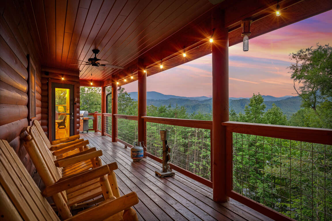 Enjoy the pleasant Tennessee weather from the wrap-around balcony and deck, gather around the natural wood fire-pit, grill out, or soak in the bubbling warmth of the private hot tub.