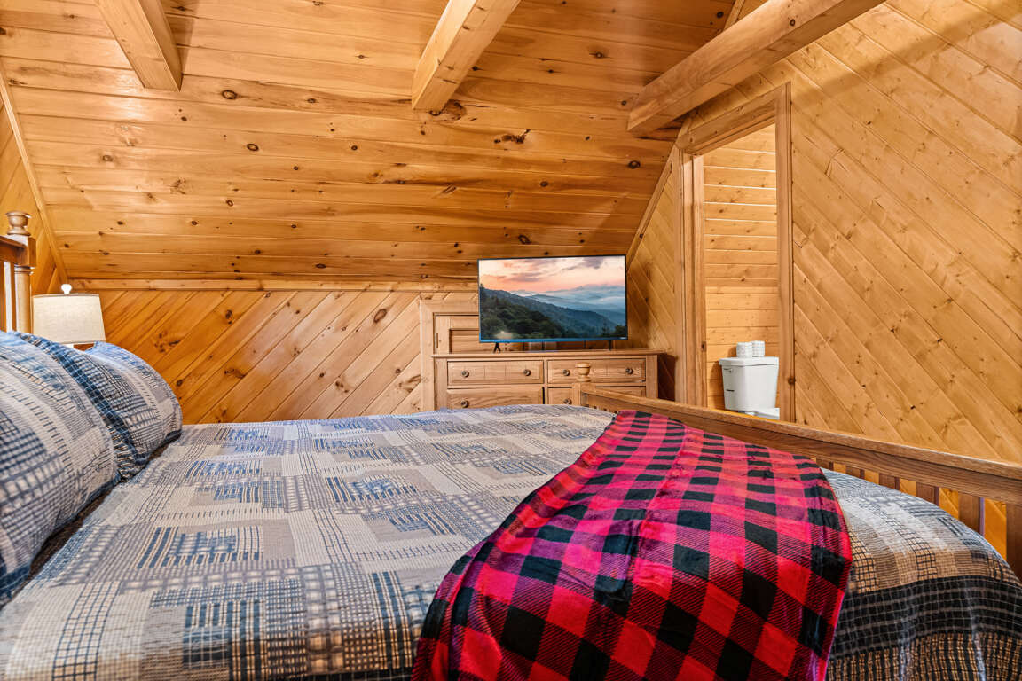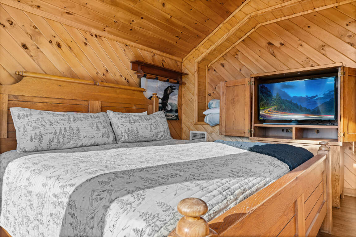 • Bedroom 3, Upper Level – King bed, TV, ensuite full bath with standing shower